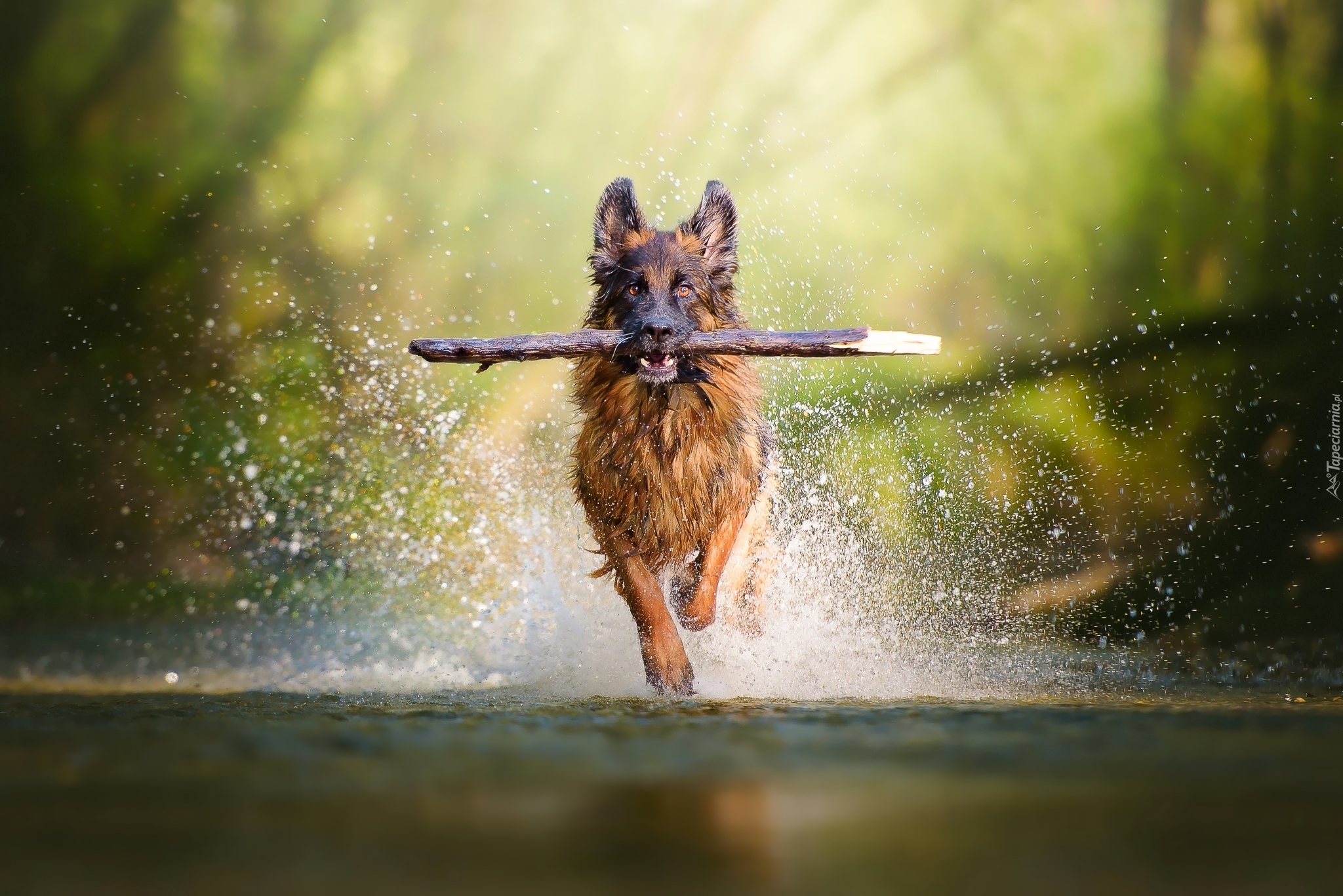 Edytor tapety: Aportujący owczarek niemiecki