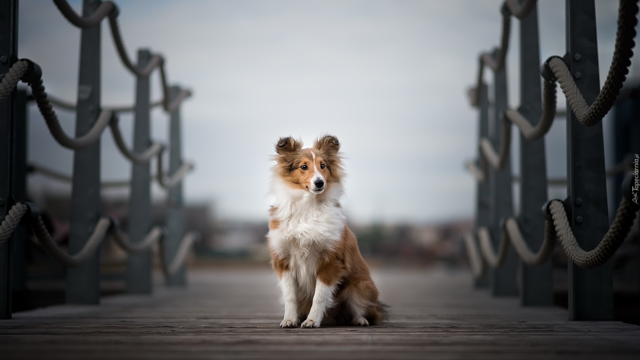 Edytor tapety: Owczarek szetlandzki na moście