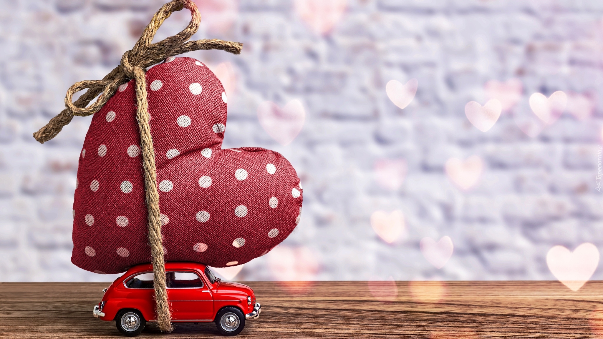 Edytor tapety: Ogromne serce przywiązane sznurkiem do samochodu