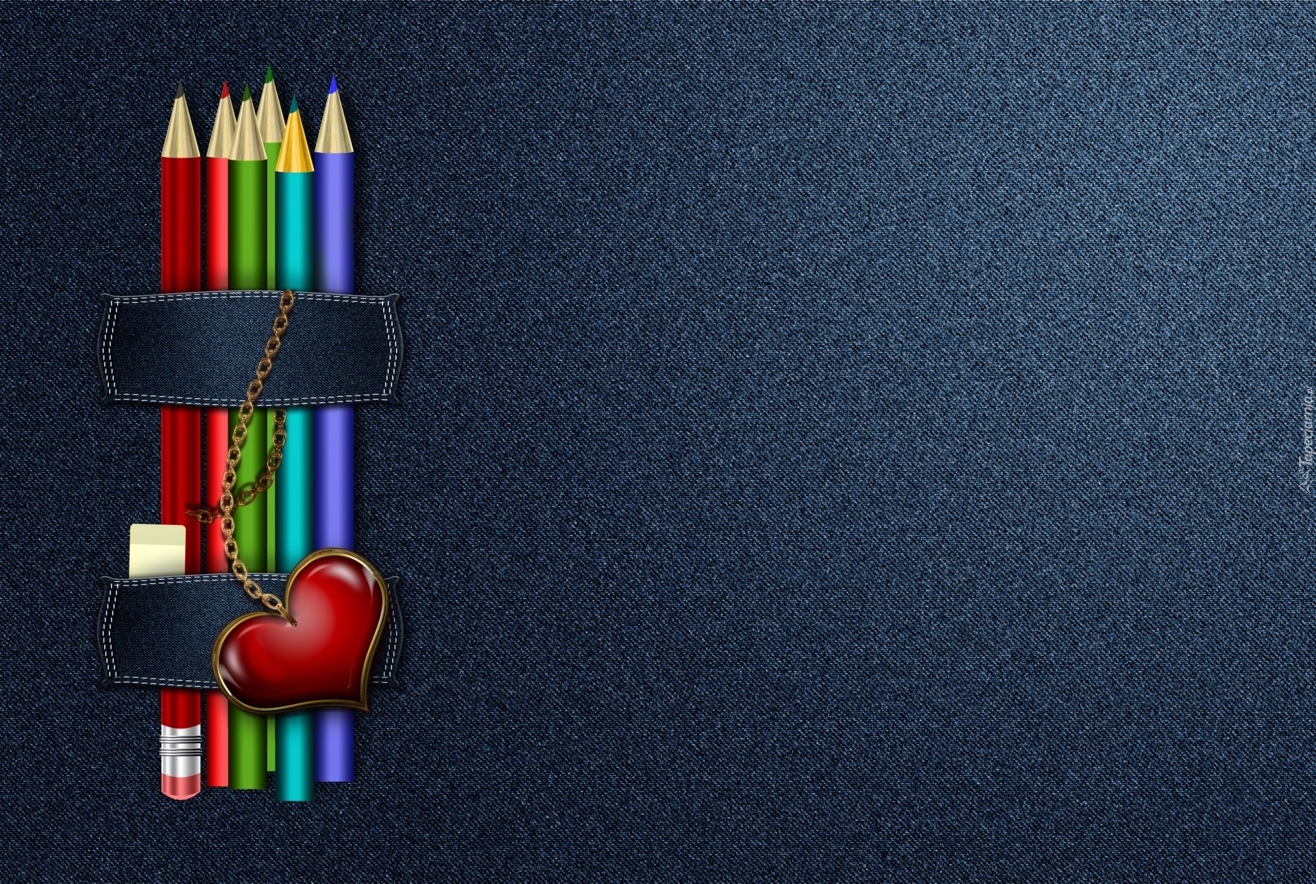 Edytor tapety: Kolorowe kredki i serce na łańcuszku