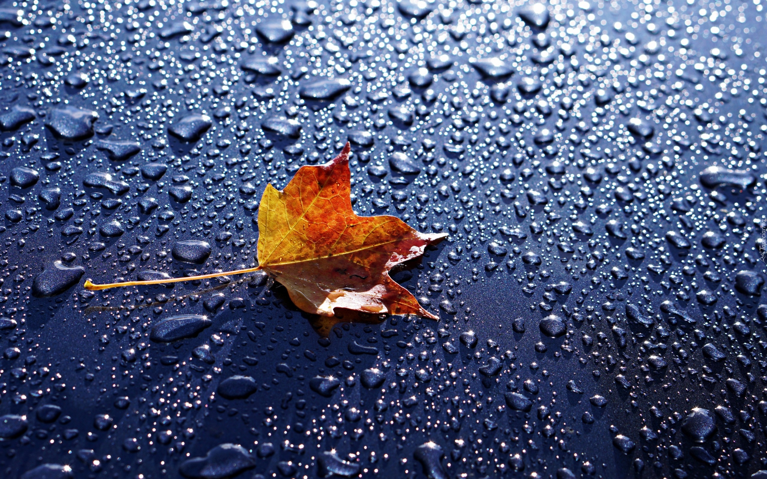 Edytor tapety: Klonowy liść w kroplach wody
