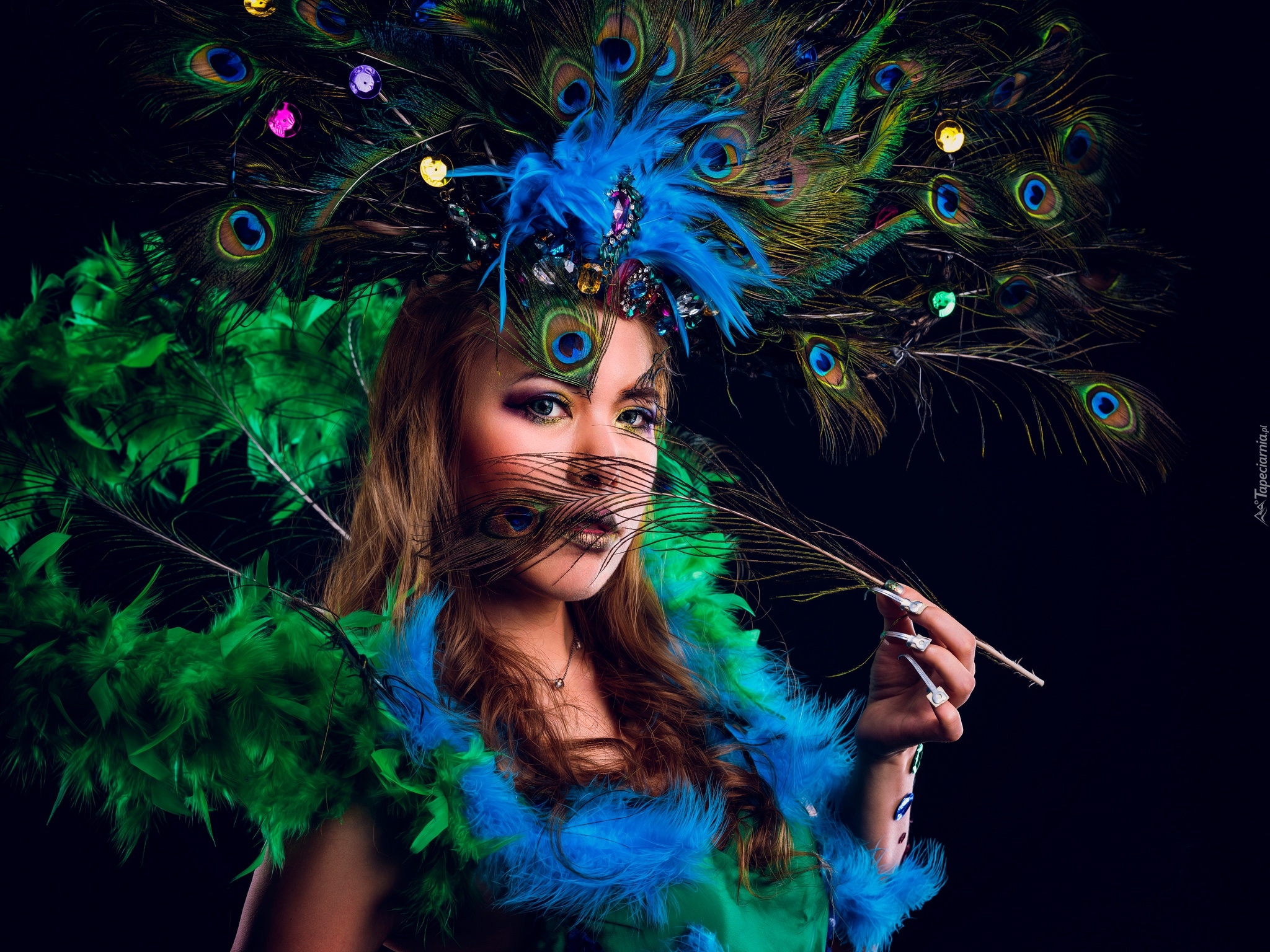 Edytor tapety: Kobieta w nakryciu głowy z pawich piór