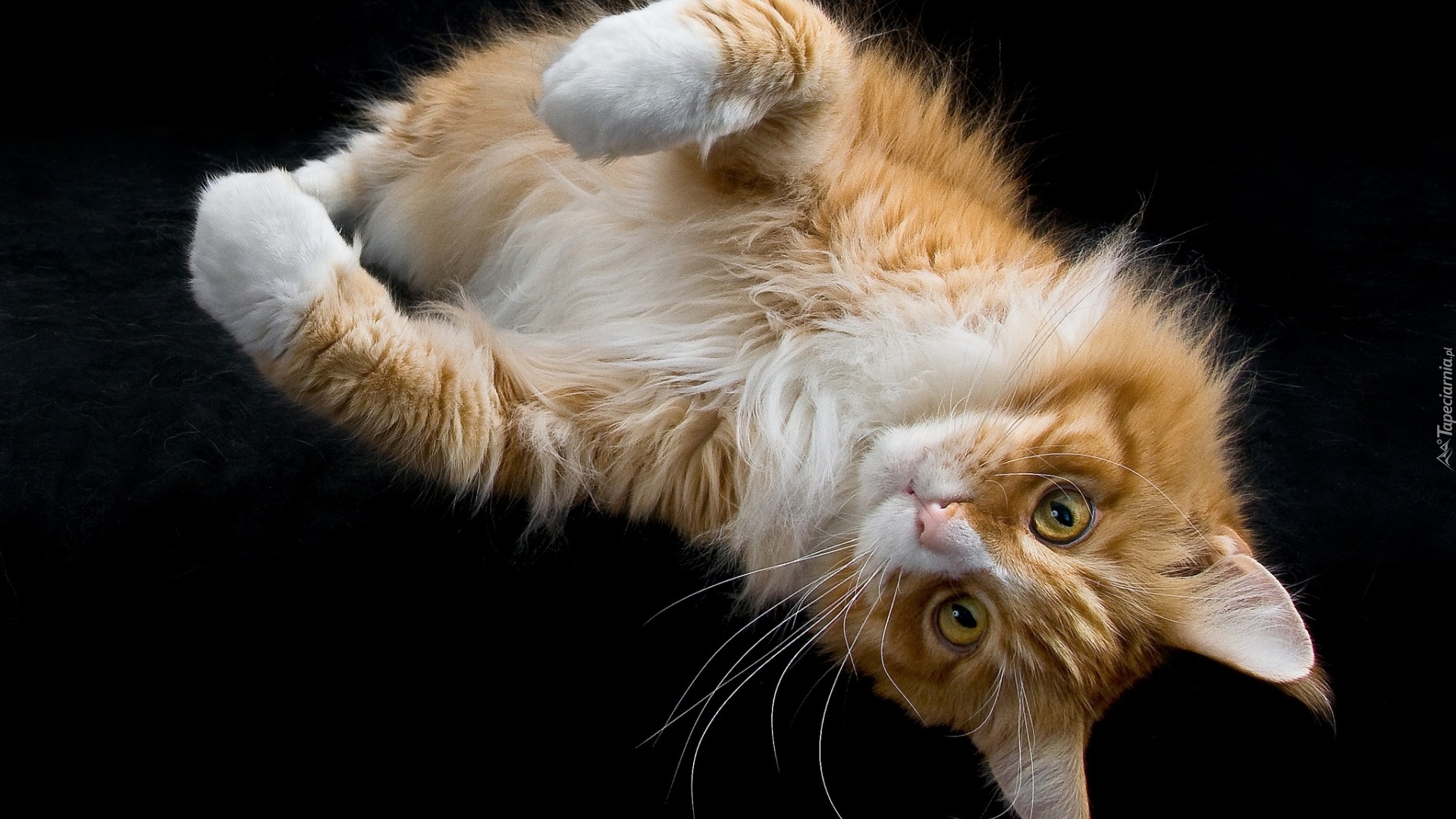 Edytor tapety: Maine coon leżący na grzbiecie