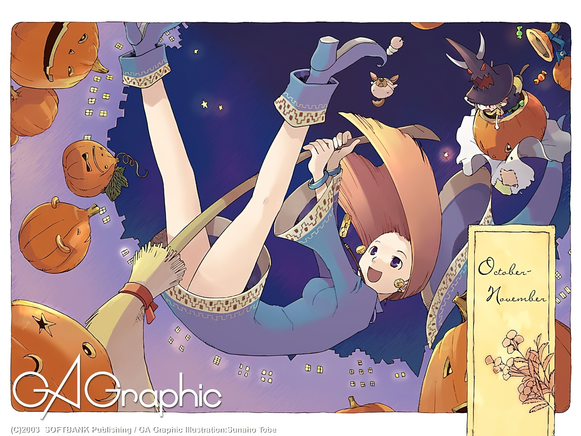 Edytor tapety: Ga Graphic, dziewczyna, dynie, miotła