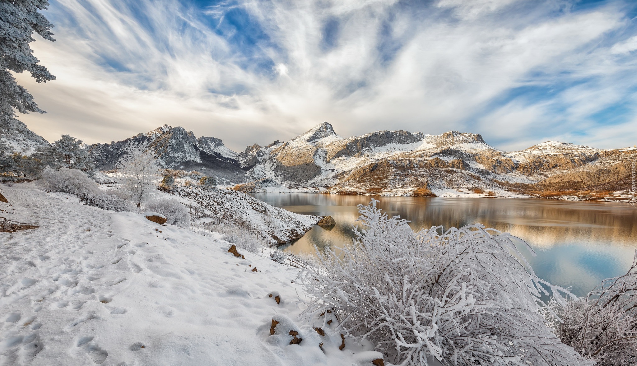 Edytor tapety: Jezioro Embalse de Riaño zimą