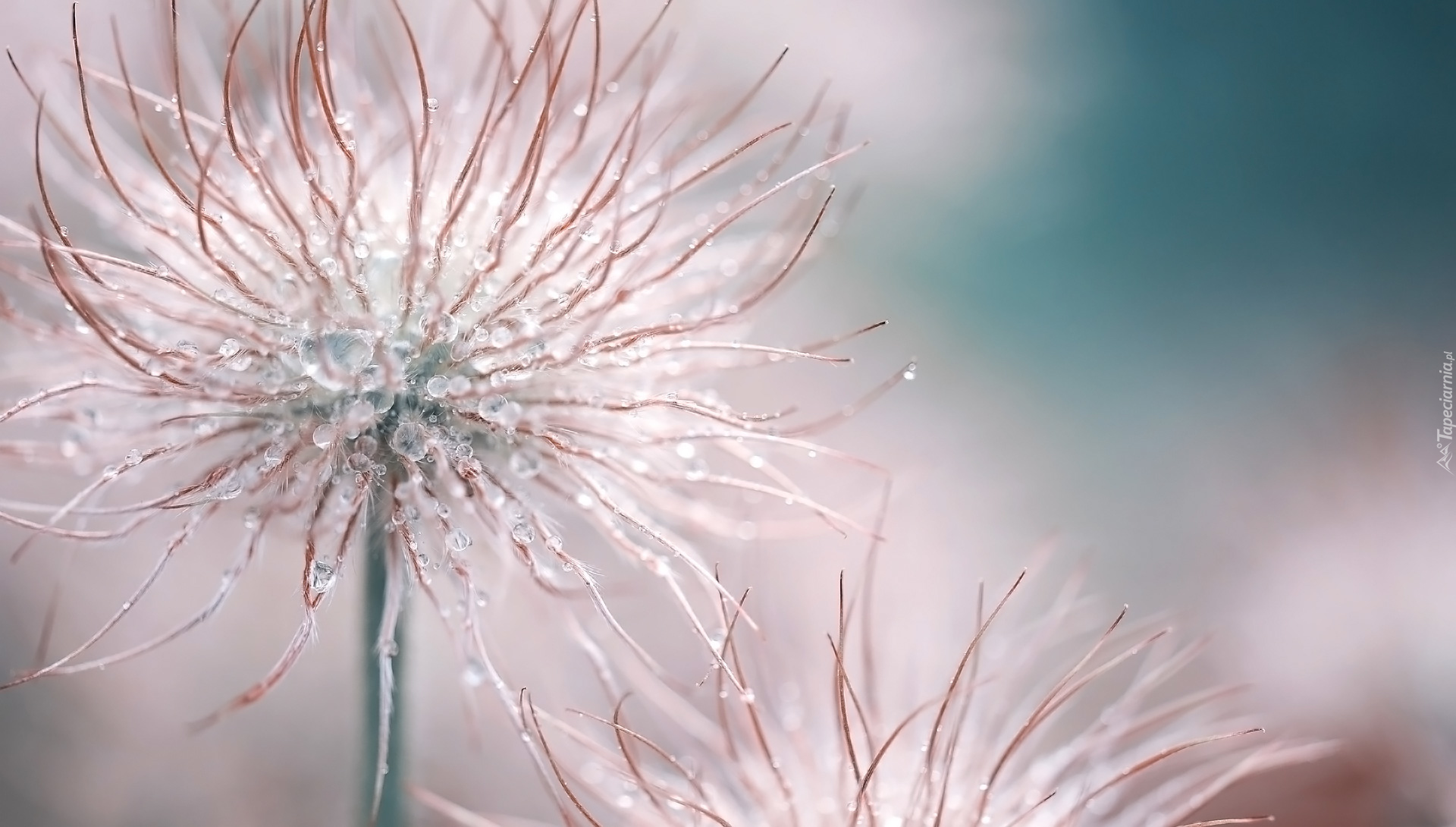 Edytor tapety: Niełupki sasanki alpejskiej w kroplach wody