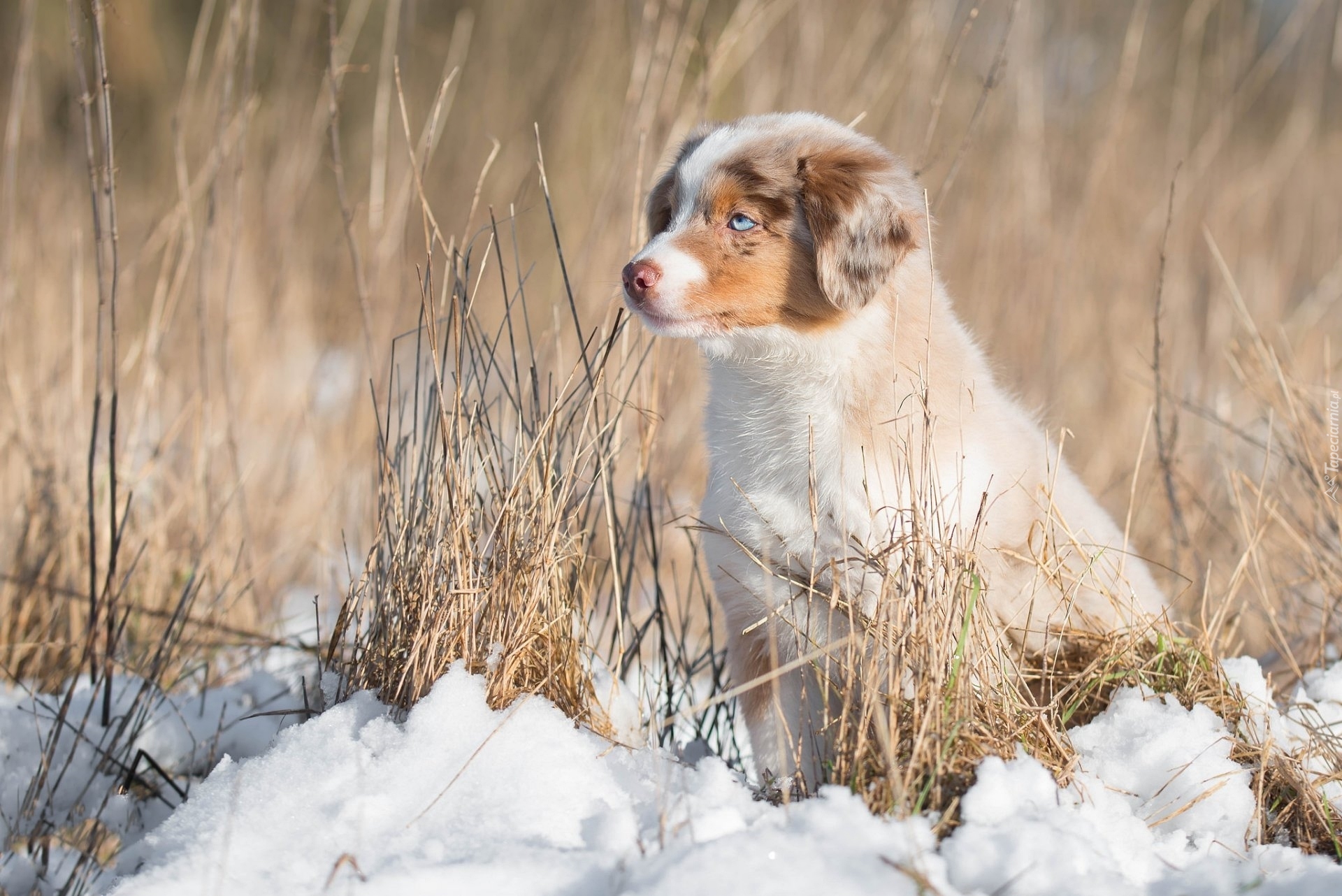 Edytor tapety: Owczarek australijski na śniegu