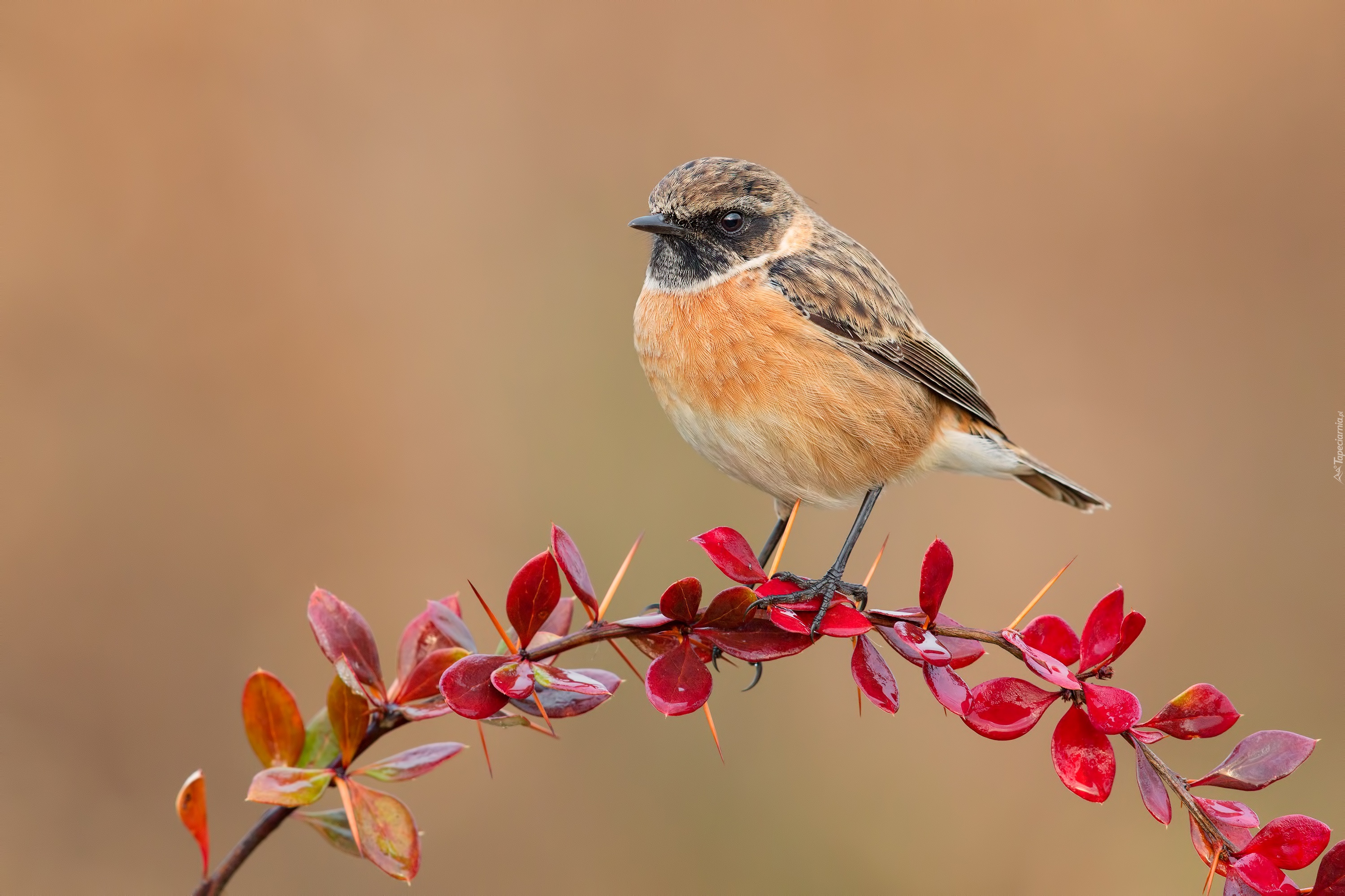 Edytor tapety: Kląskawka zwyczajna na gałązce berberysu