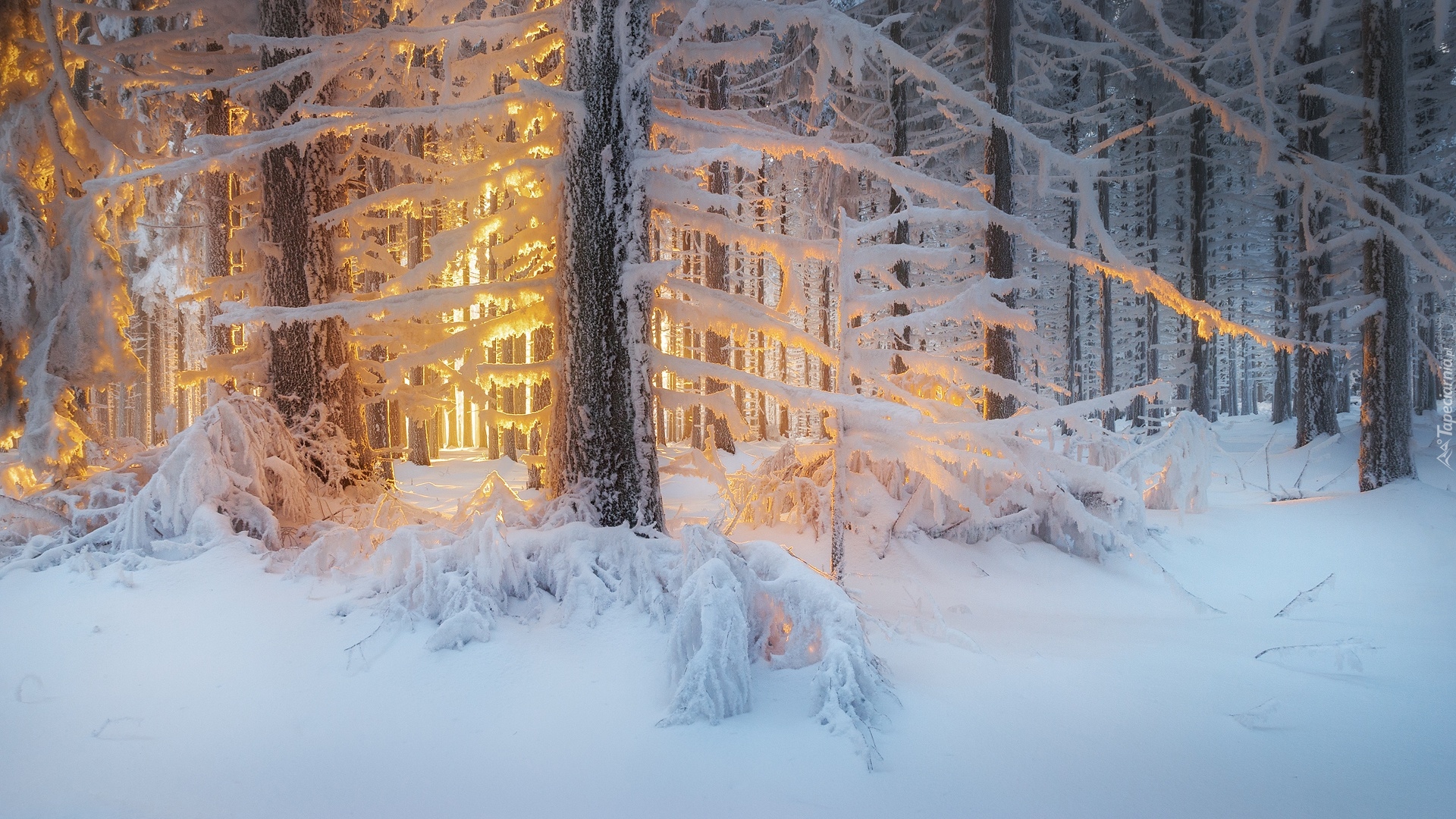 Edytor tapety: Słoneczne światło w zimowym lesie