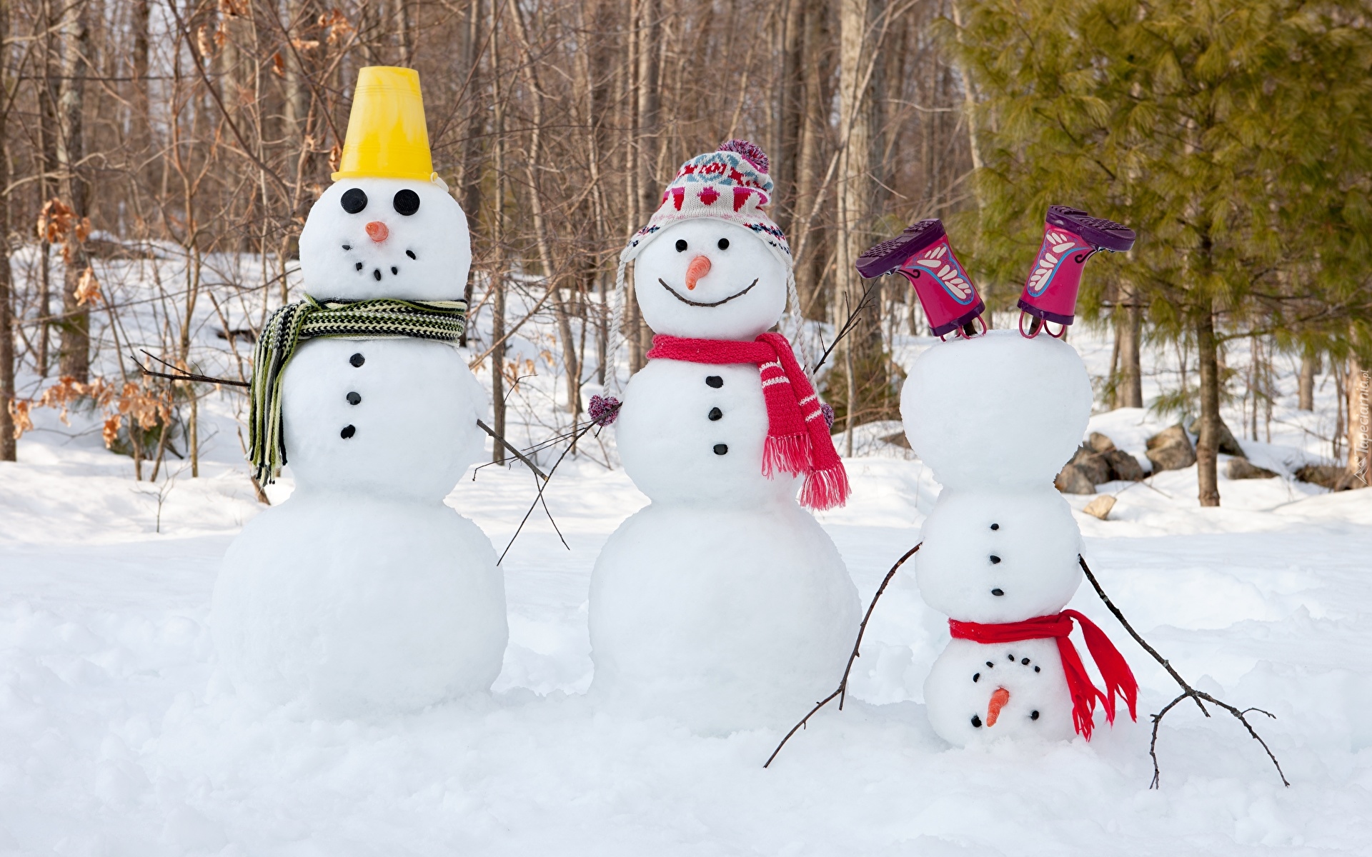 Edytor tapety: Wesołe śnieżne bałwany