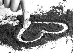 Edytor tapety: Palec rysujący serce na rozsypanej kawie