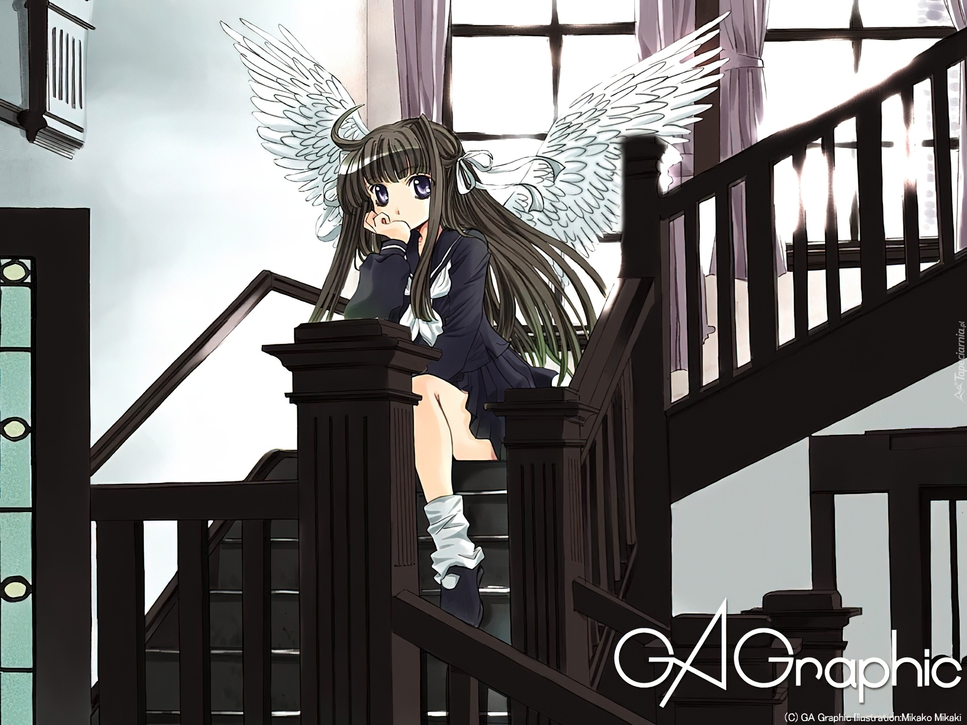 Edytor tapety: Ga Graphic, schody, dziewczyna, skrzydła