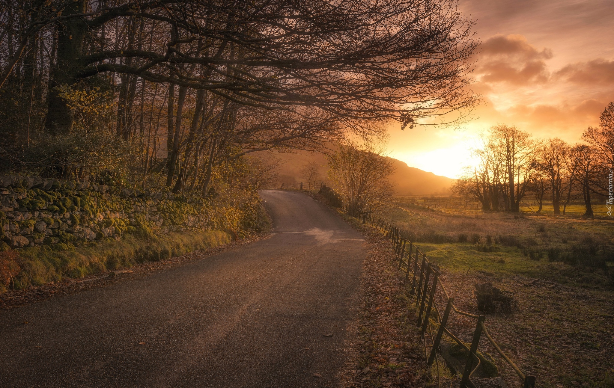 Edytor tapety: Asfaltowa droga o zachodzie słońca jesienią