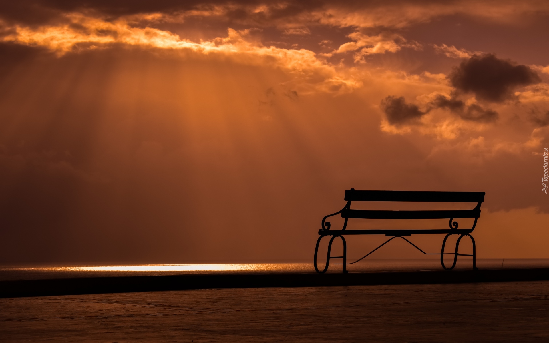 Edytor tapety: Ławka pod zachmurzonym niebem o zachodzie słońca