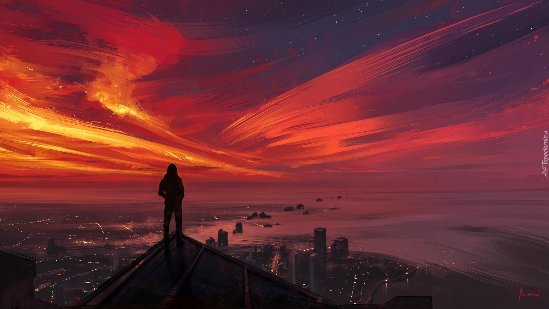 Edytor tapety: Mężczyzna na dachu wieżowca