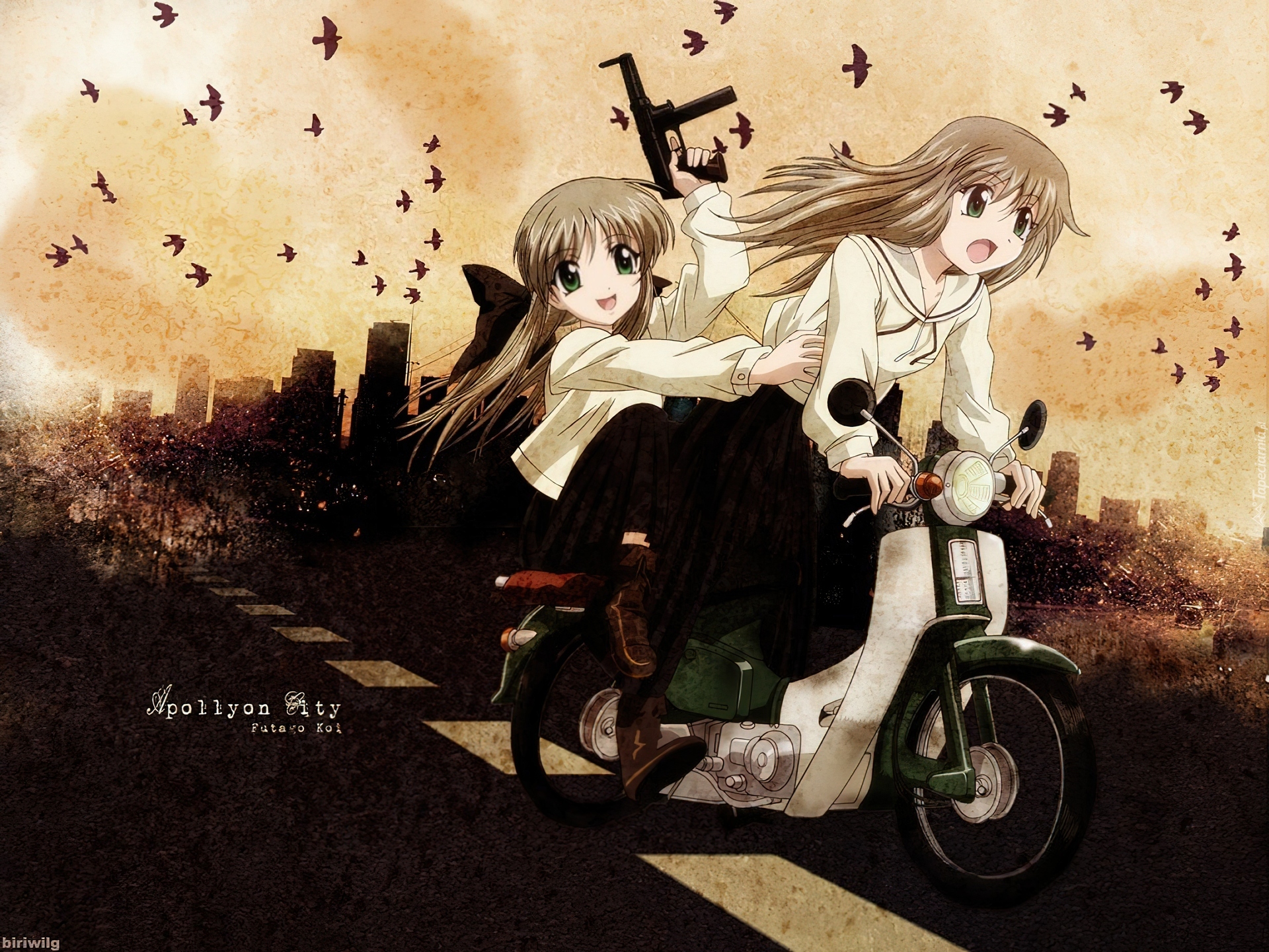 Edytor tapety: Futakoi Alternative, motor, dziewczyny, ptaki
