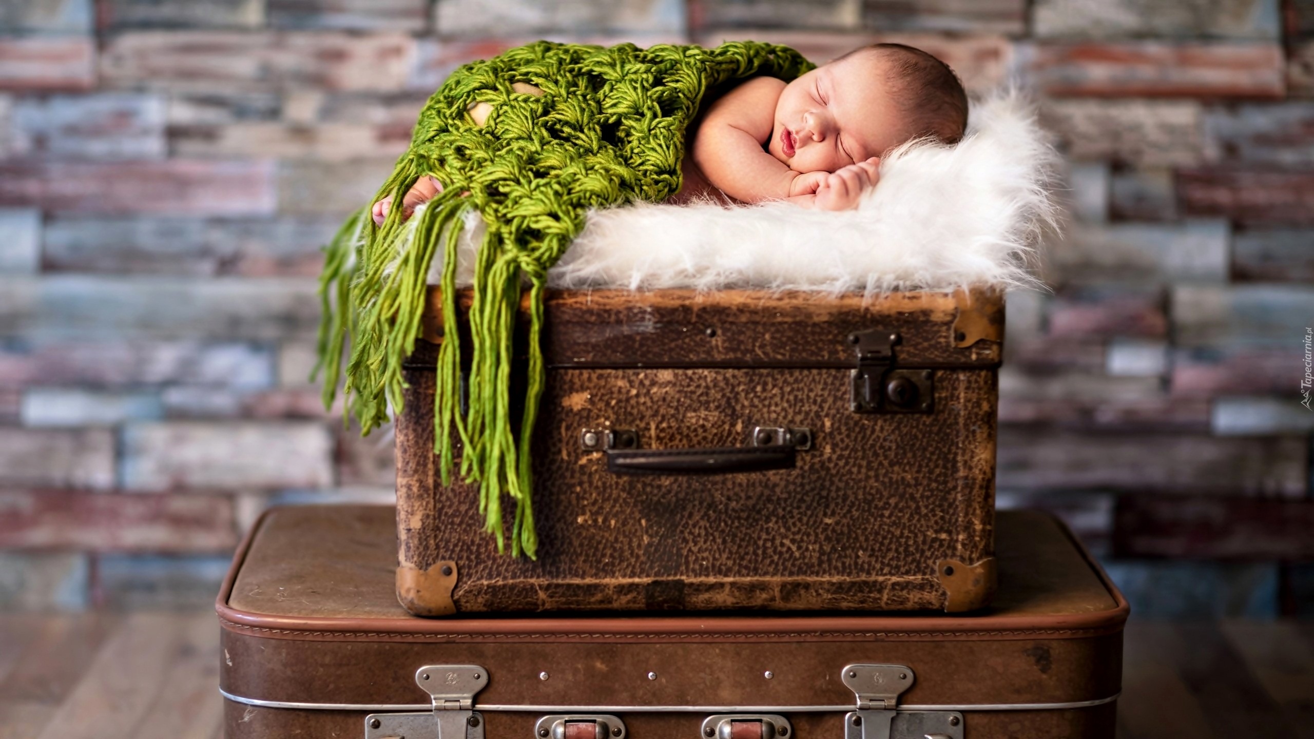 Edytor tapety: Śpiące na walizkach dziecko
