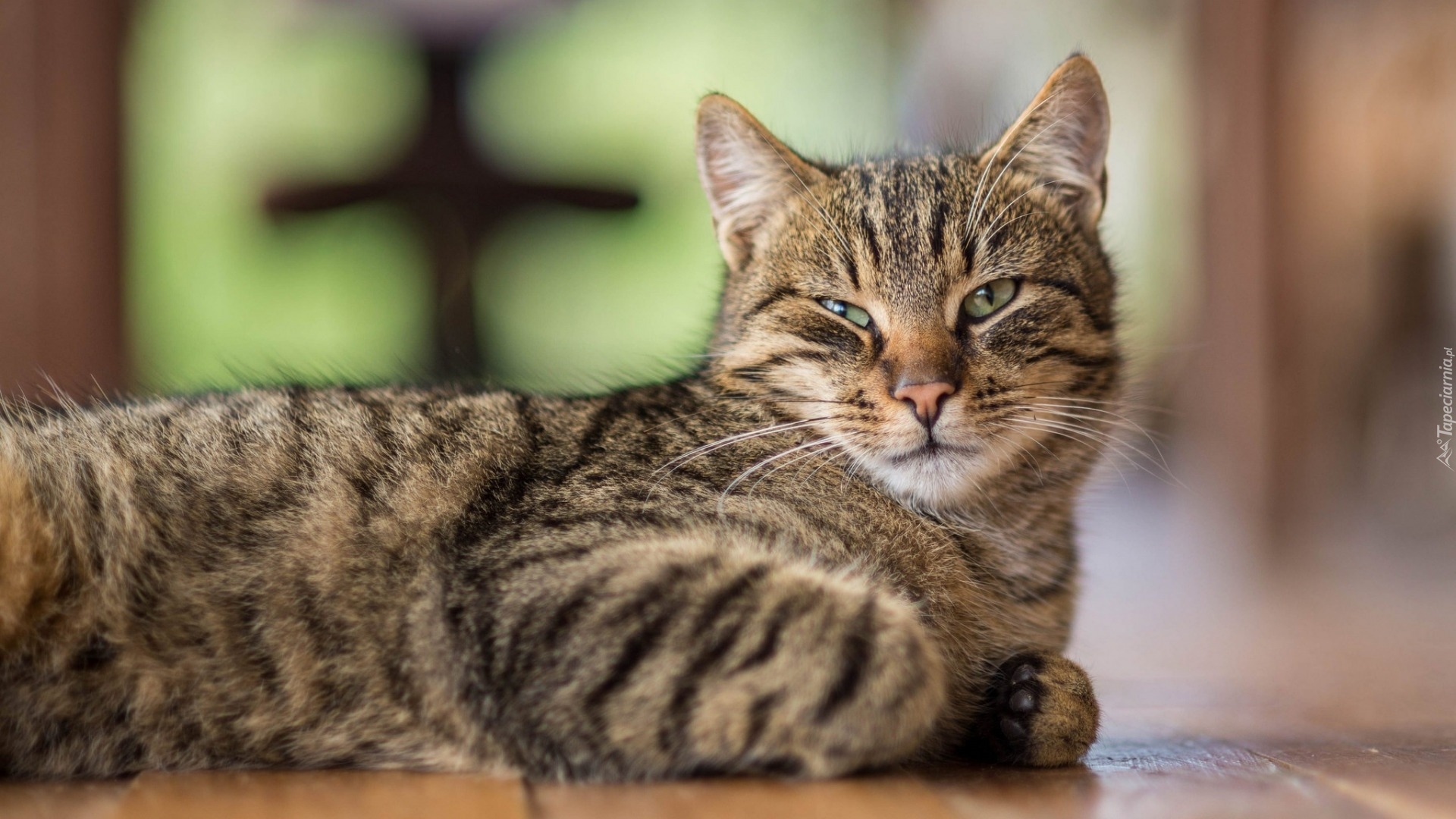 Edytor tapety: Kot z zielonymi oczami leżący na podłodze