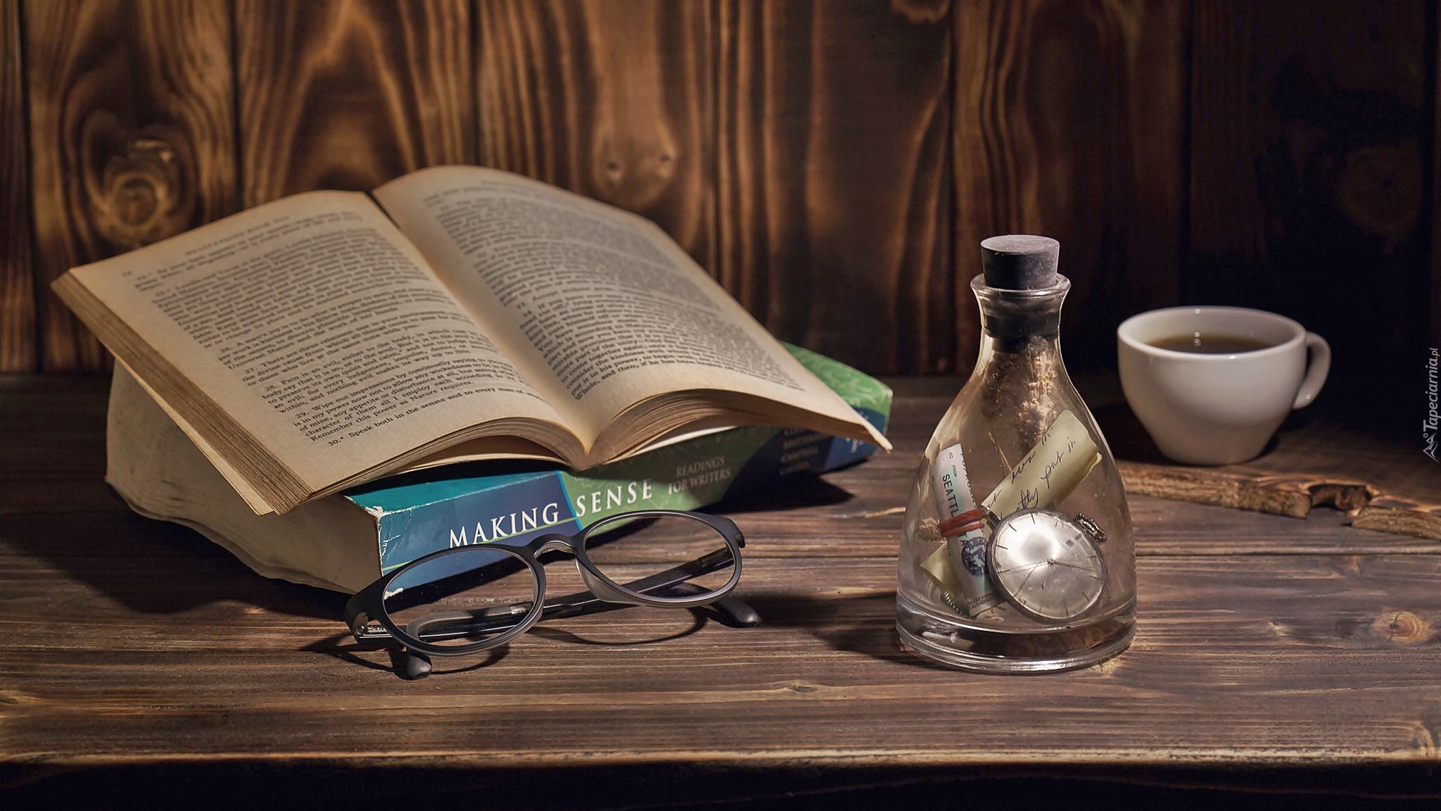Edytor tapety: Okulary obok otwartej książki