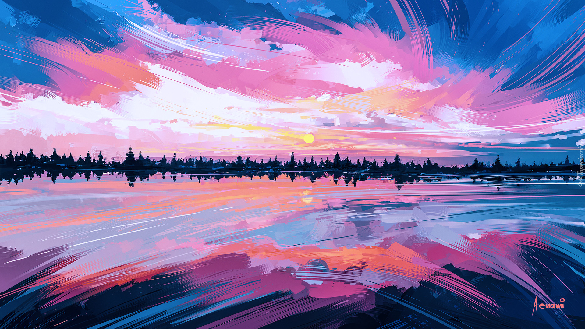 Edytor tapety: Wschód słońca w grafice