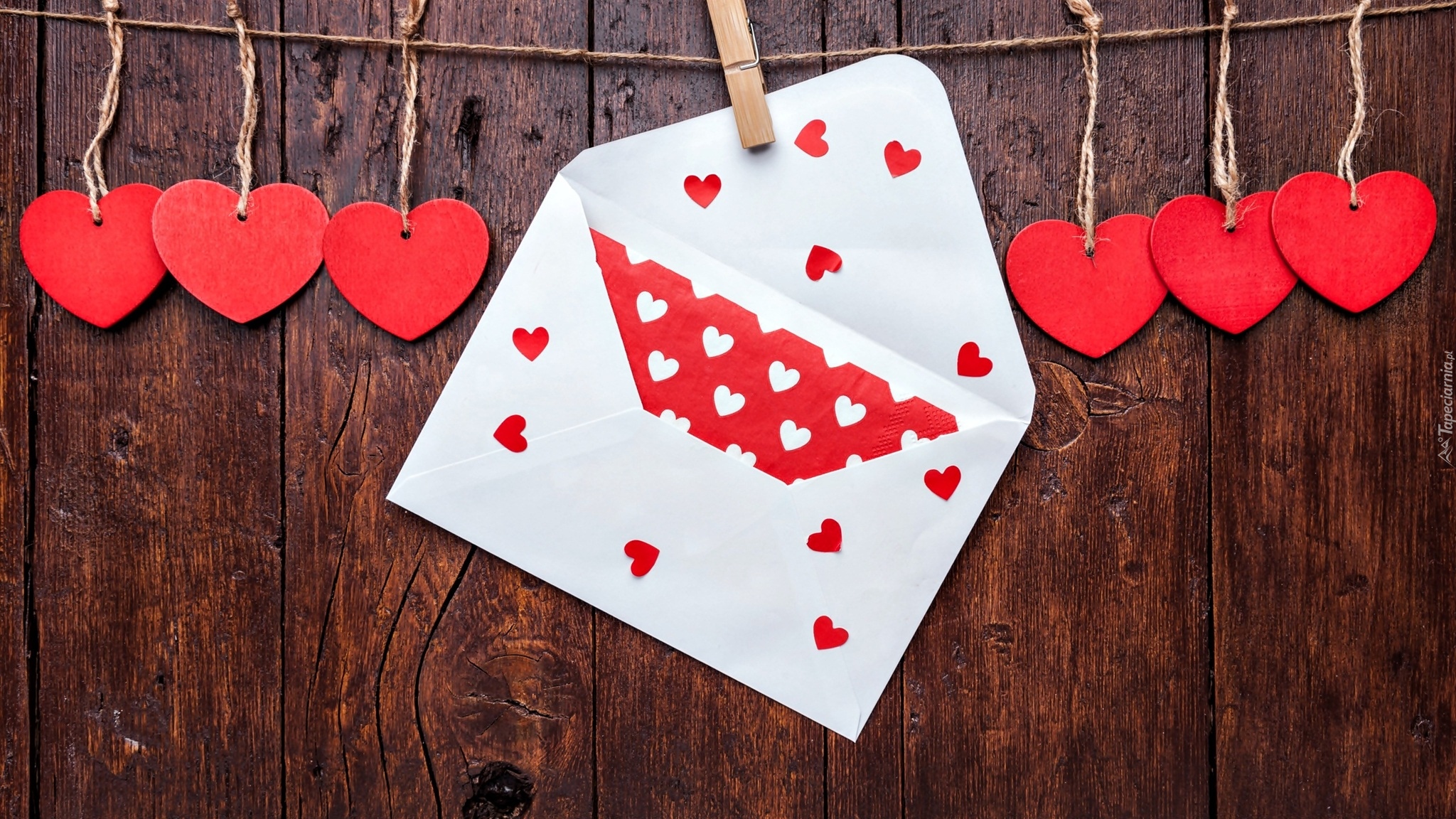 Edytor tapety: Czerwone serduszka i koperta na sznurku