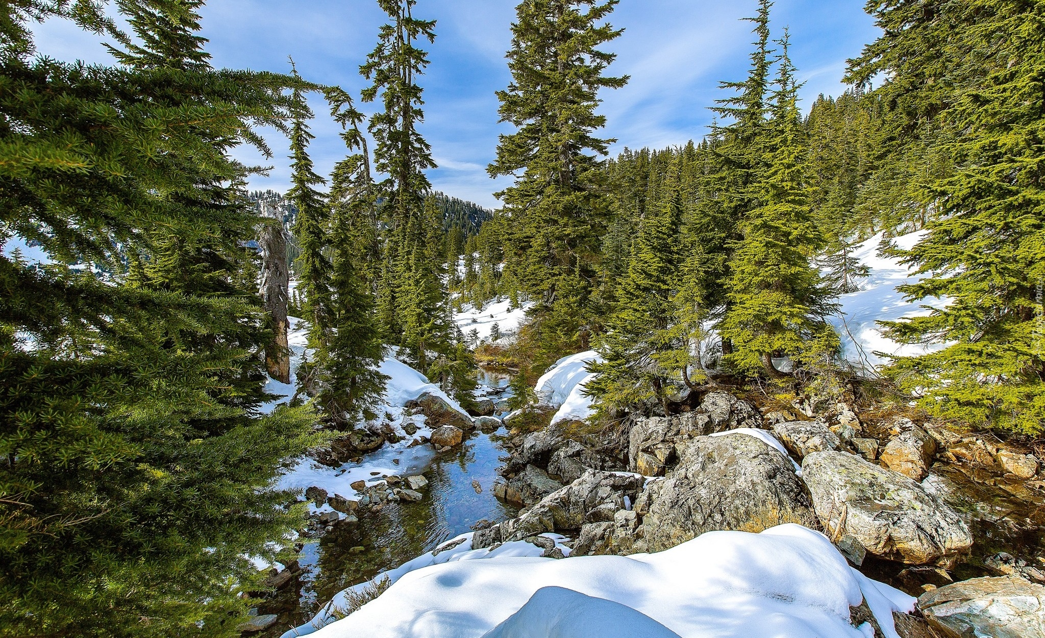 Edytor tapety: Drzewa nad strumykiem zimą