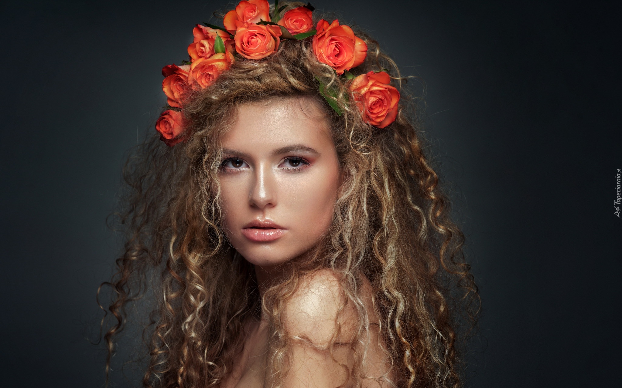 Edytor tapety: Dziewczyna w wianku z różyczek