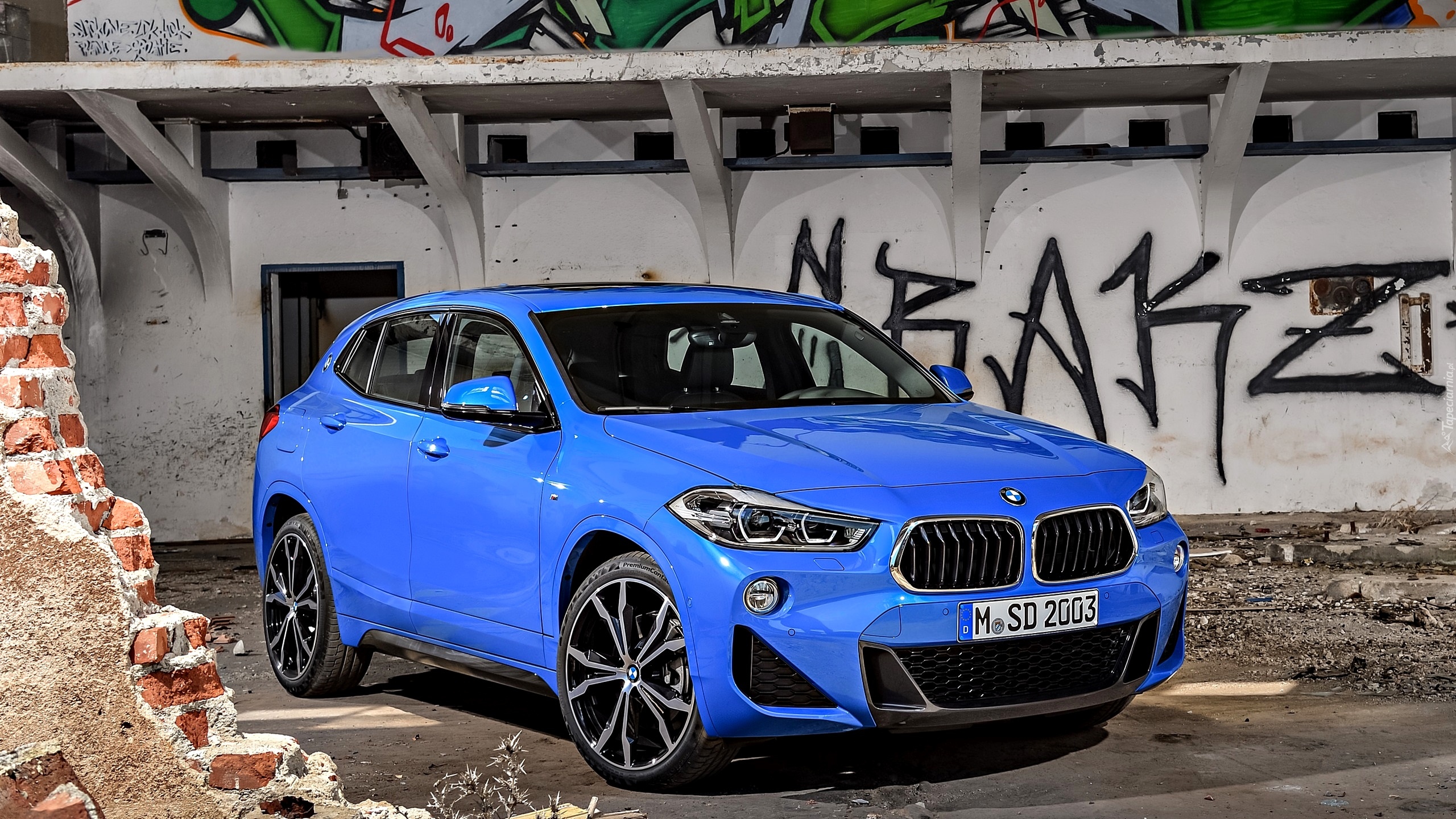 Edytor tapety: Niebieskie BMW X2 rocznik 2018