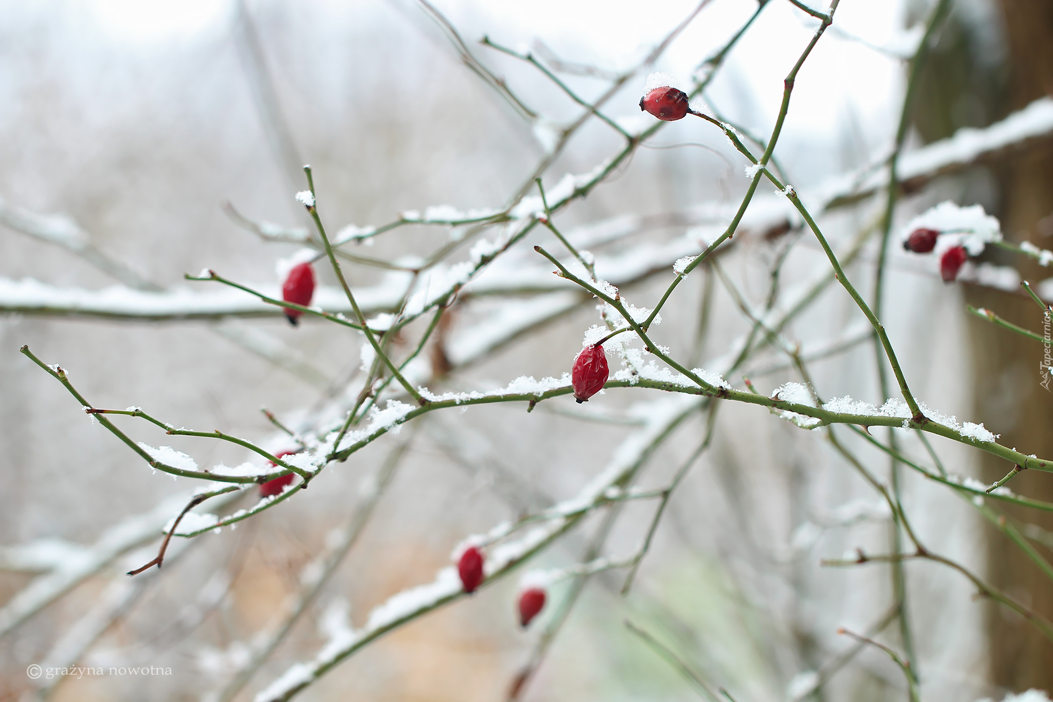 Edytor tapety: Ośnieżone gałązki dzikiej róży