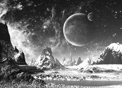 Edytor tapety: Księżyc nad skałami w grafice fantasy