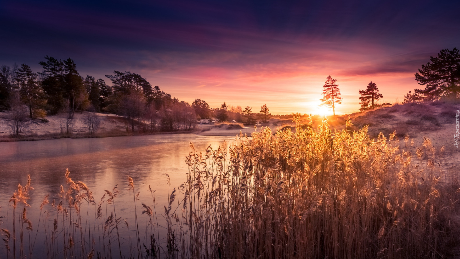Edytor tapety: Jezioro Ruutujärvi w Finlandii o wschodzie słońca