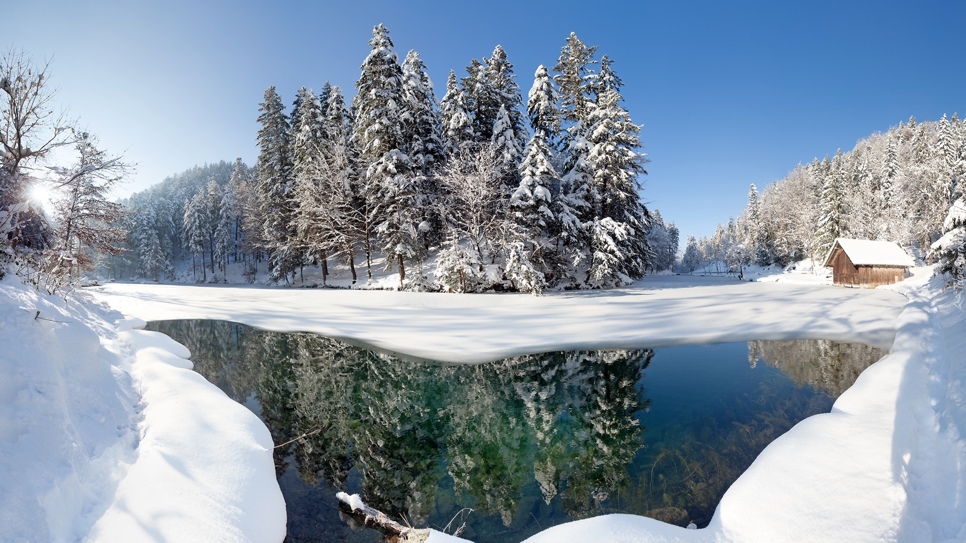 Edytor tapety: Drewniana chata nad rzeką