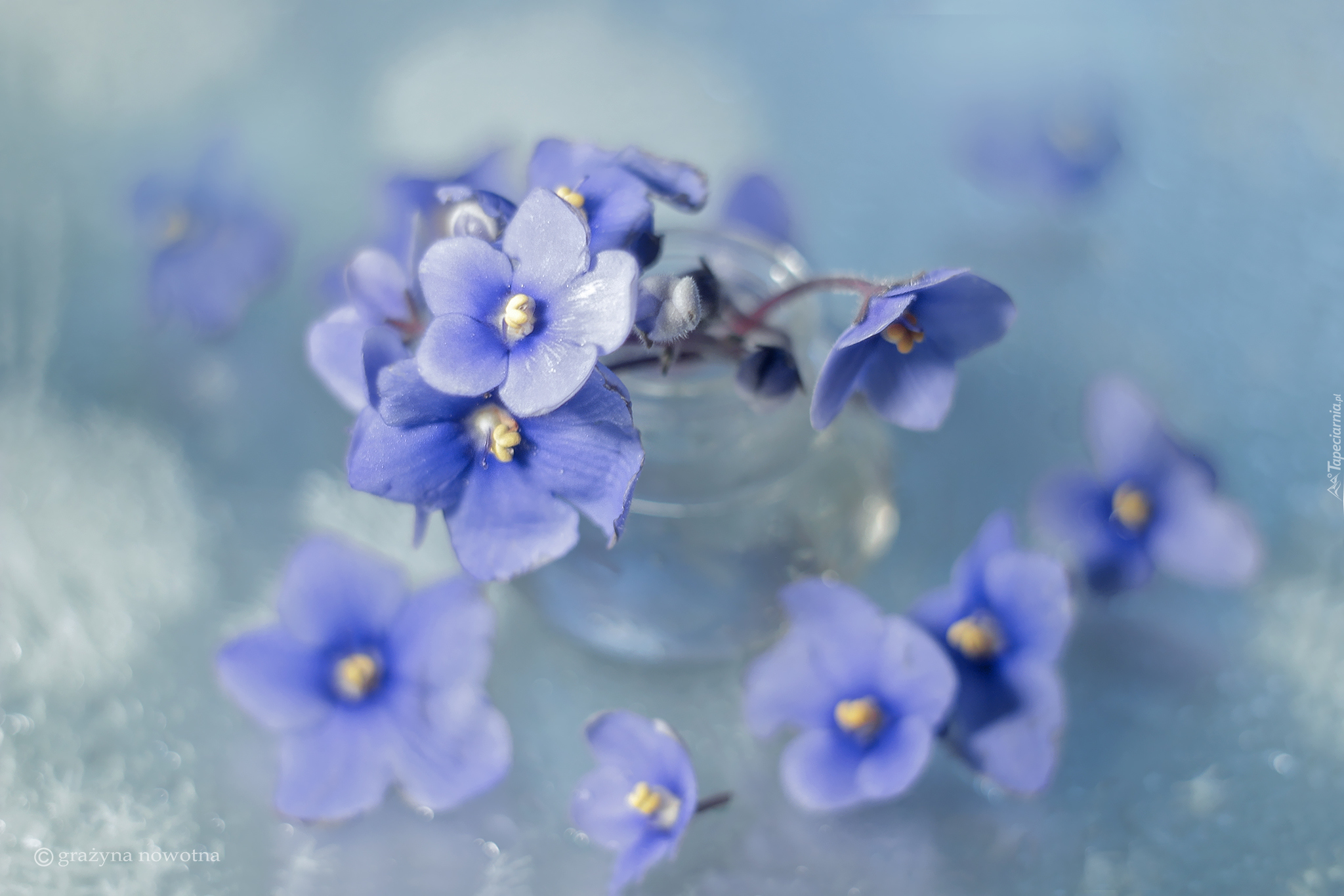 Edytor tapety: Fiołki afrykańskie w szklanym wazoniku