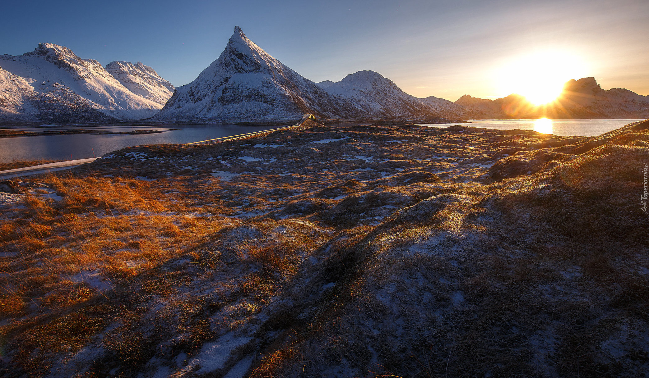 Edytor tapety: Wschód słońca na norweskich Lofotach