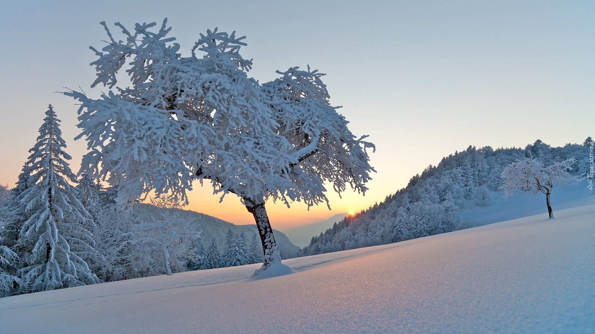 Edytor tapety: Drzewo na ośnieżonym zboczu