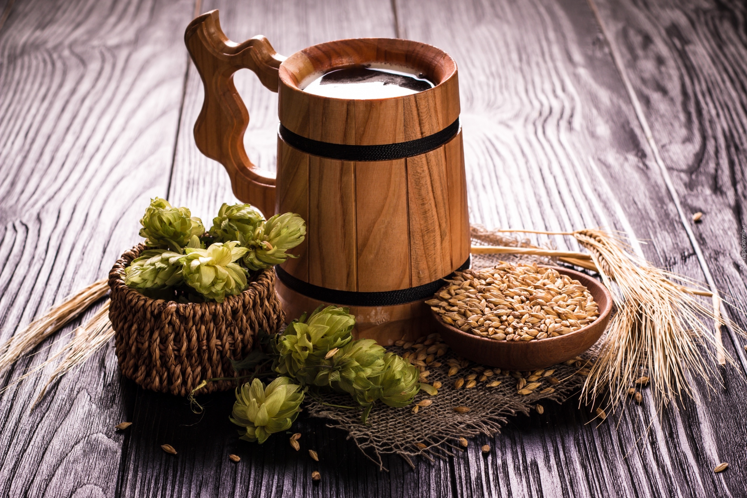 Edytor tapety: Piwo w drewnianym kuflu