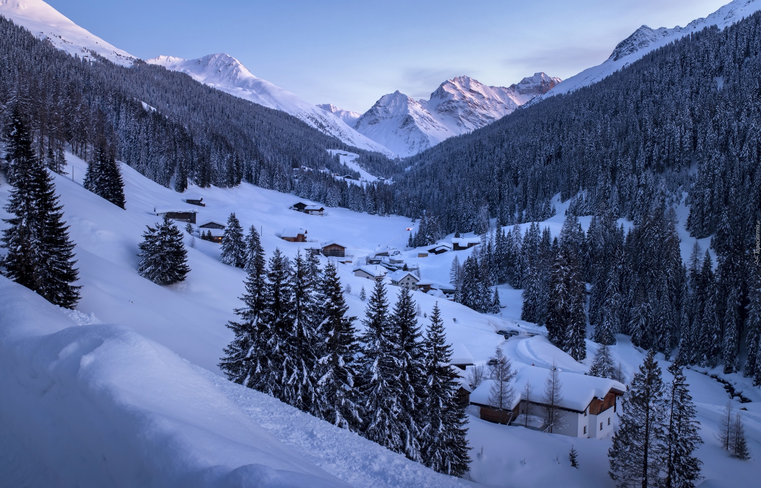 Edytor tapety: Domy w Davos w szwajcarskich Alpach zimą