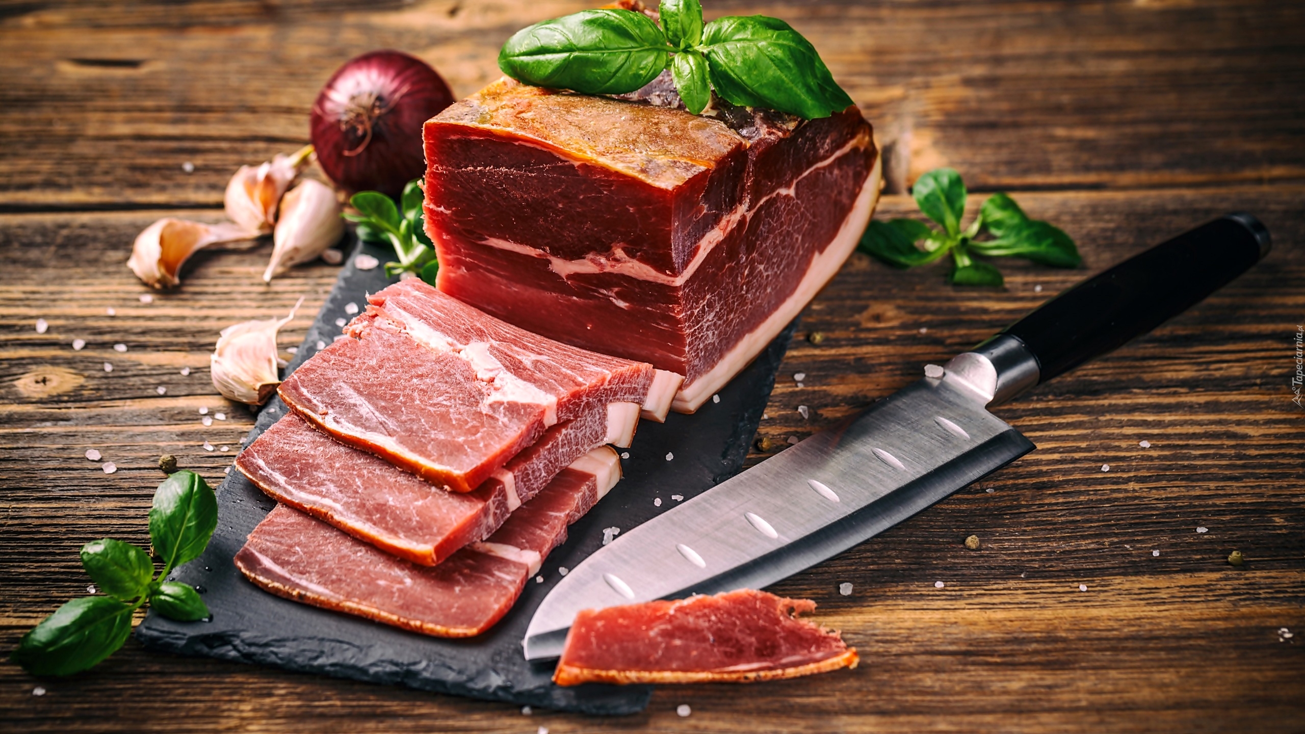 Edytor tapety: Szynka i listki bazylii