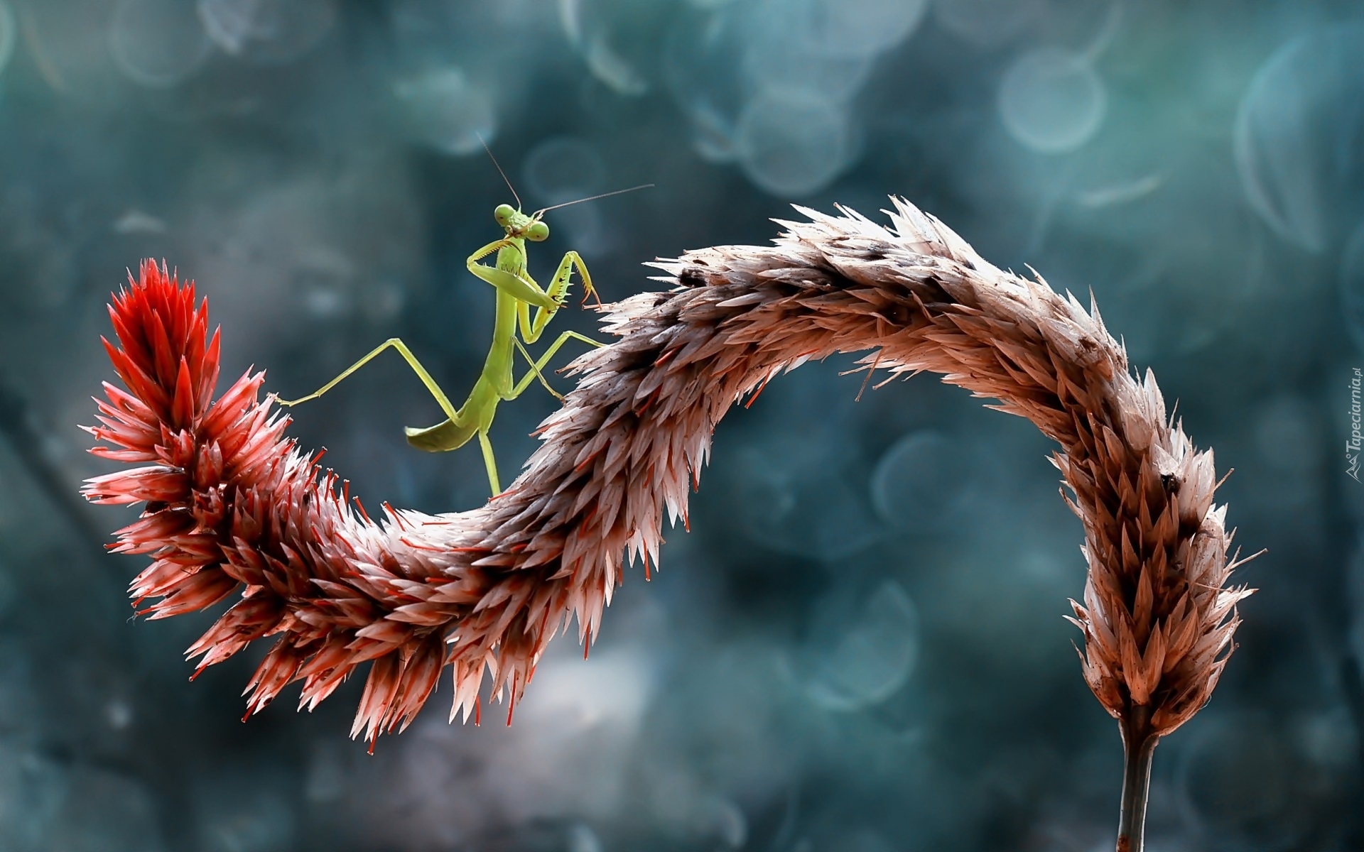 Edytor tapety: Modliszka na roślinie