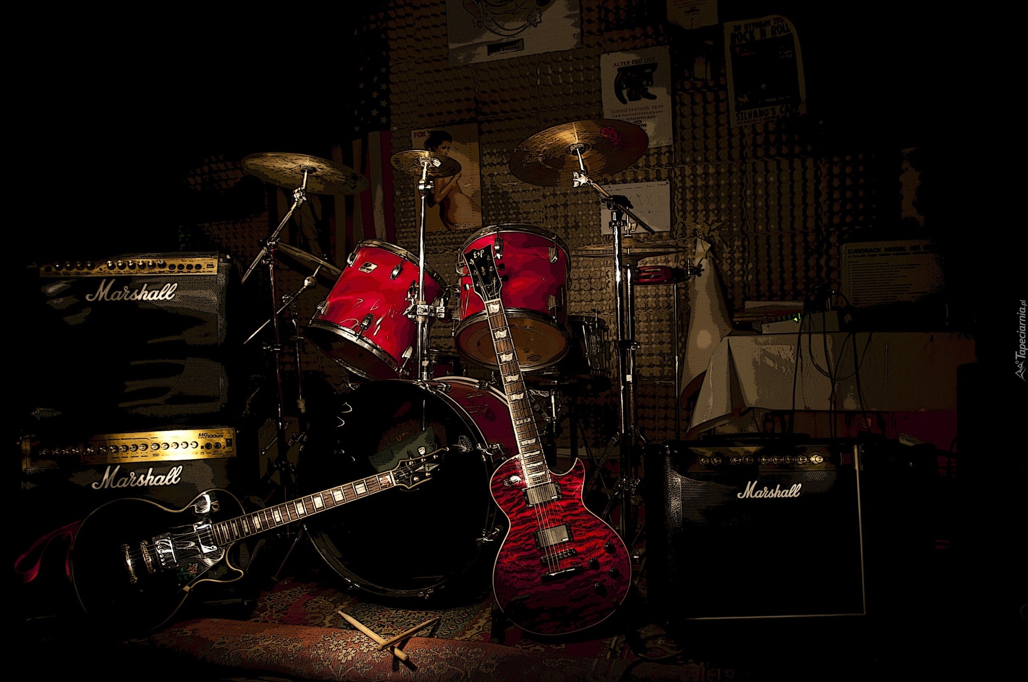 Edytor tapety: Studio z instrumentami muzycznymi
