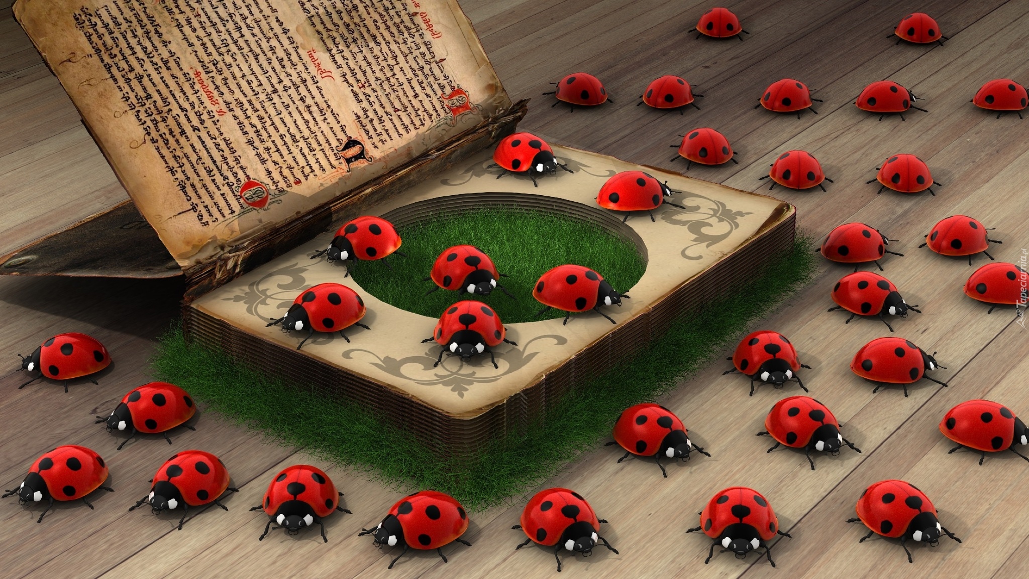 Edytor tapety: Biedronki wychodzące z książki