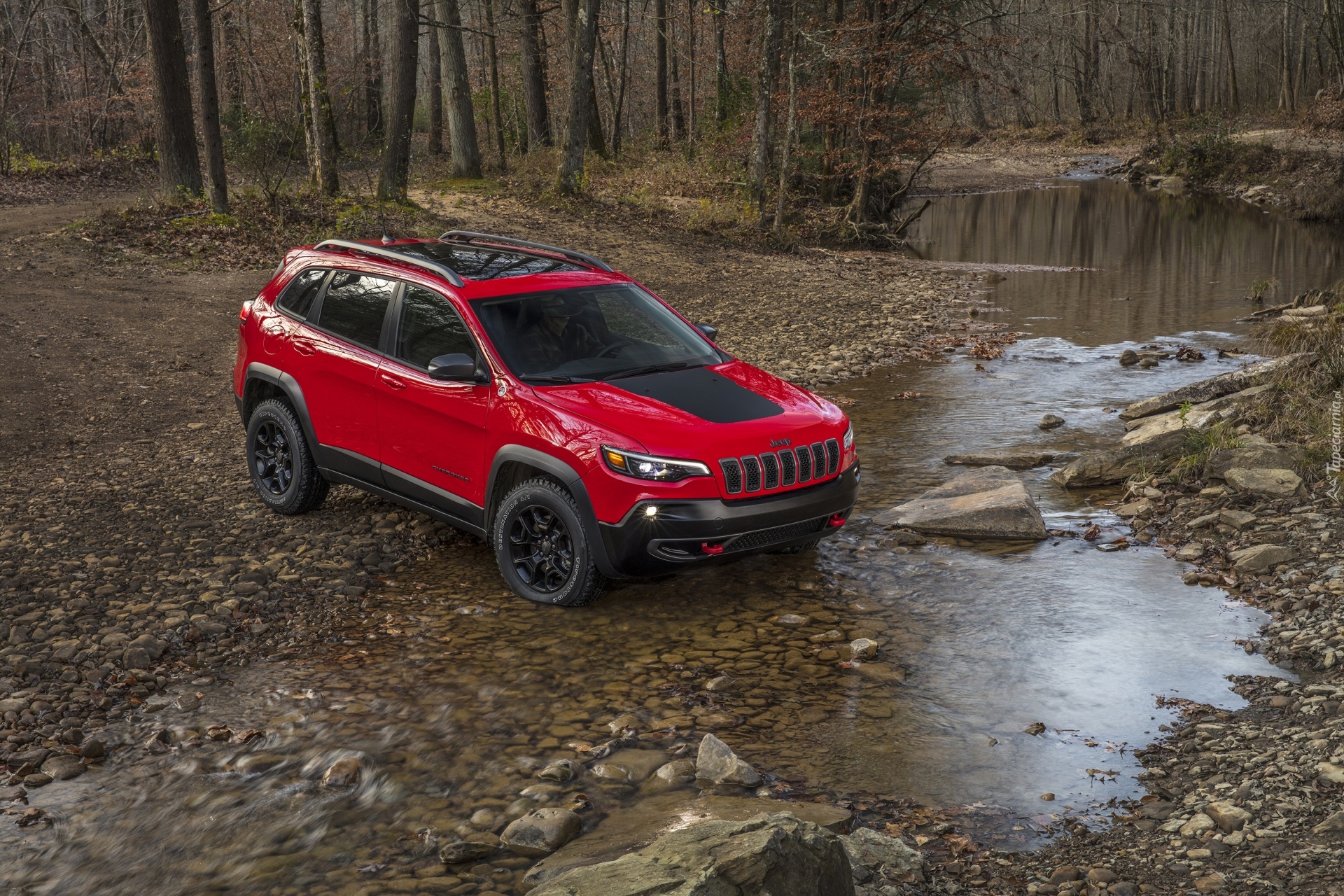 Edytor tapety: Czerwony Jeep Cherokee Trailhawk
