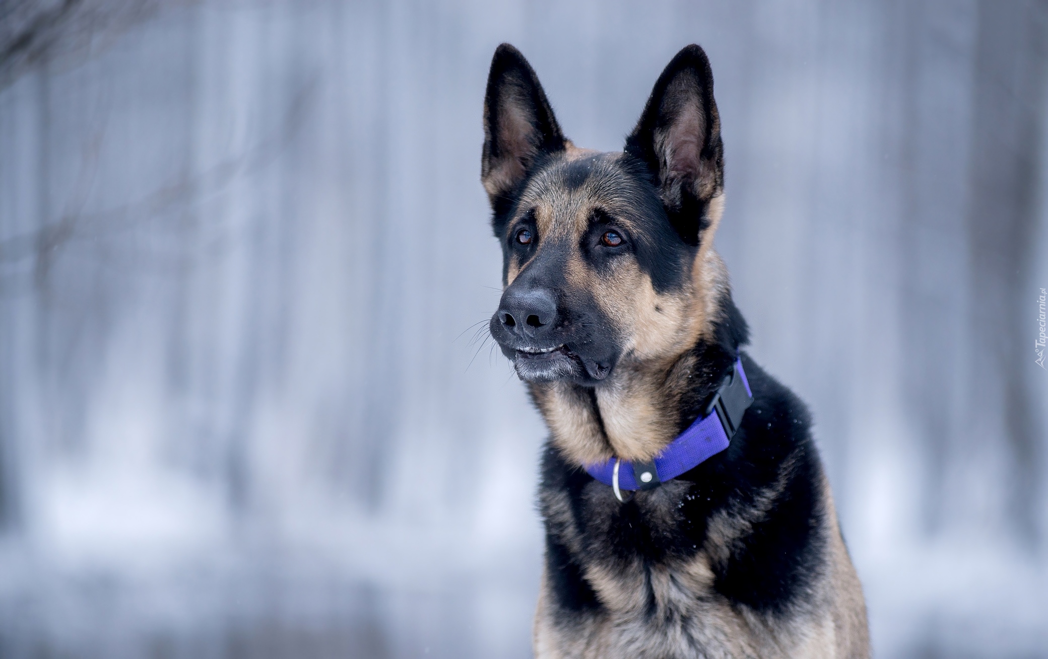 Edytor tapety: Owczarek niemiecki w niebieskiej obroży