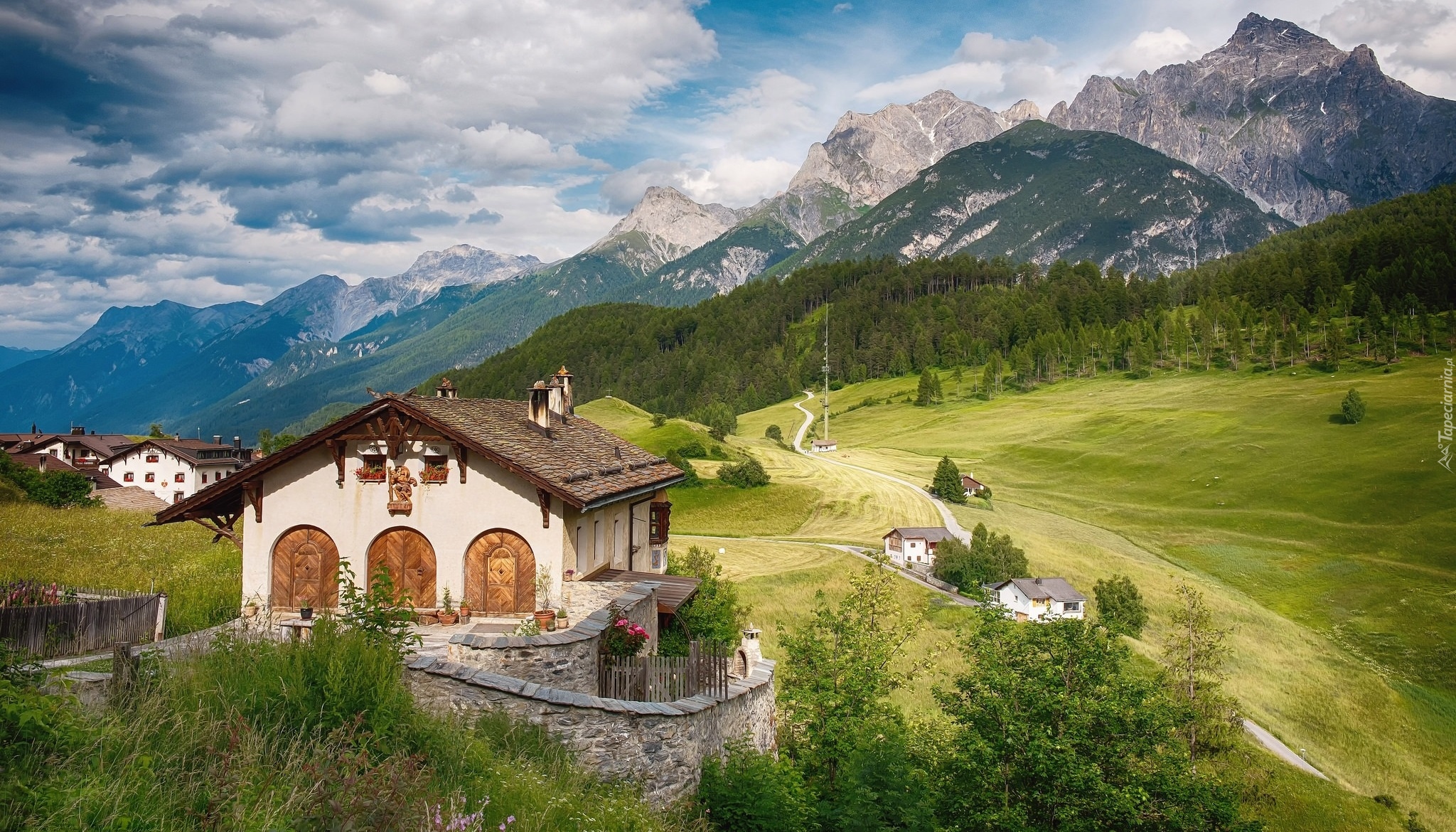 Edytor tapety: Domy w Gryzonii w Alpach Szwajcarskich