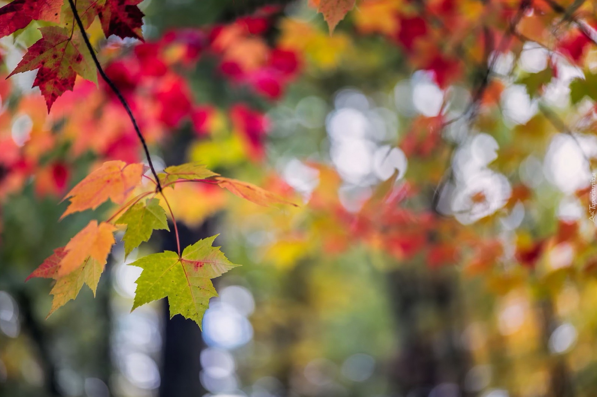 Edytor tapety: Zwisająca gałązka z jesiennymi liśćmi