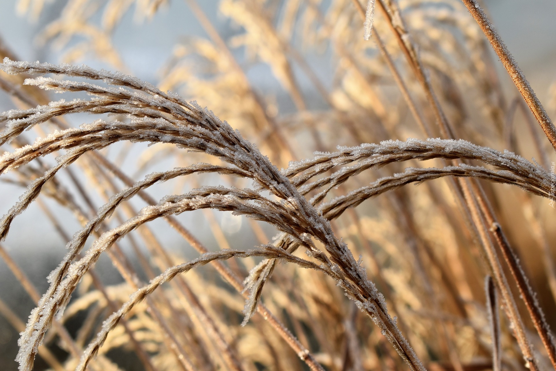 Edytor tapety: Szron na źdźbłach trawy