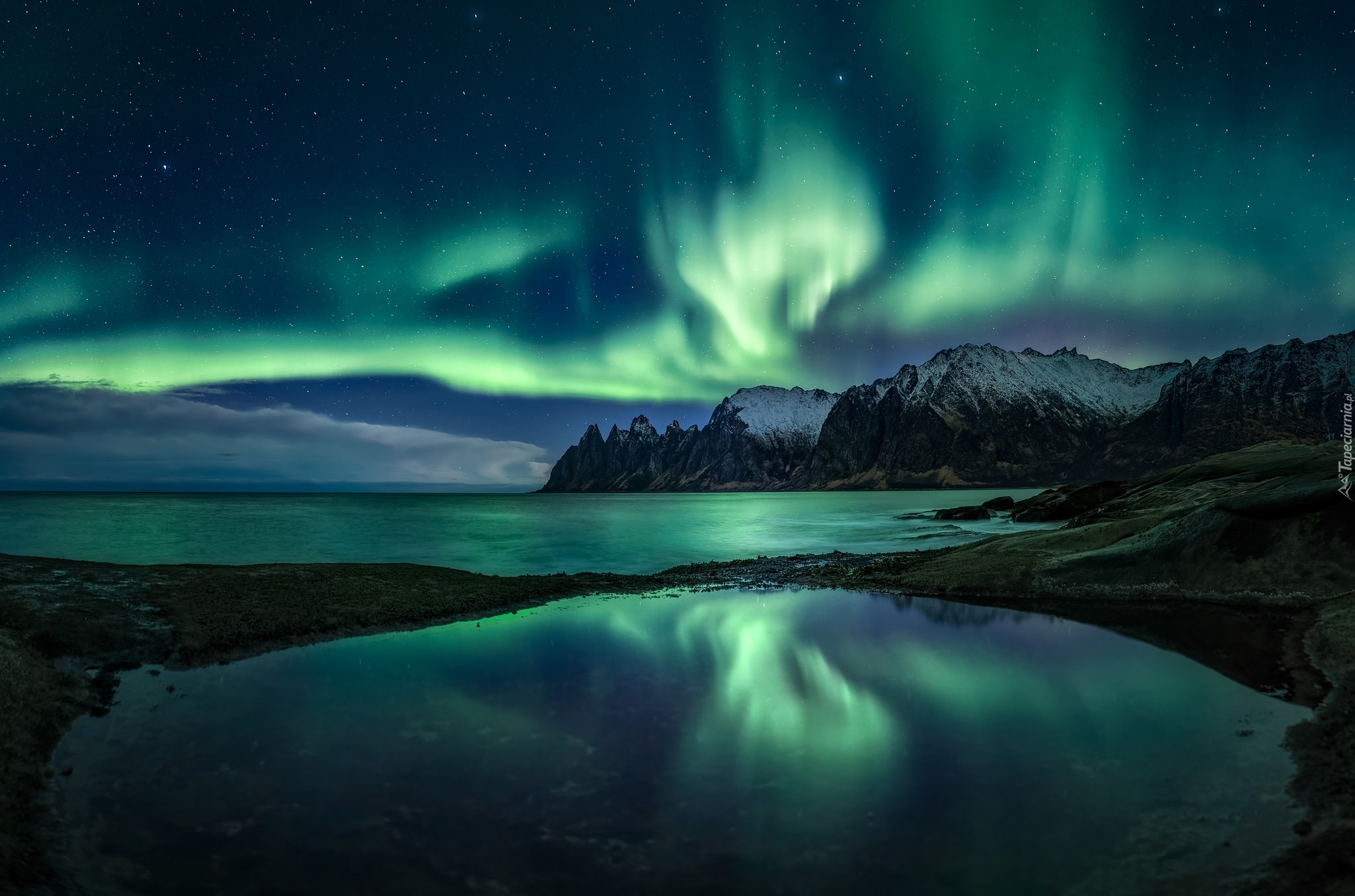 Edytor tapety: Zorza polarna nad norweską wyspą Senja