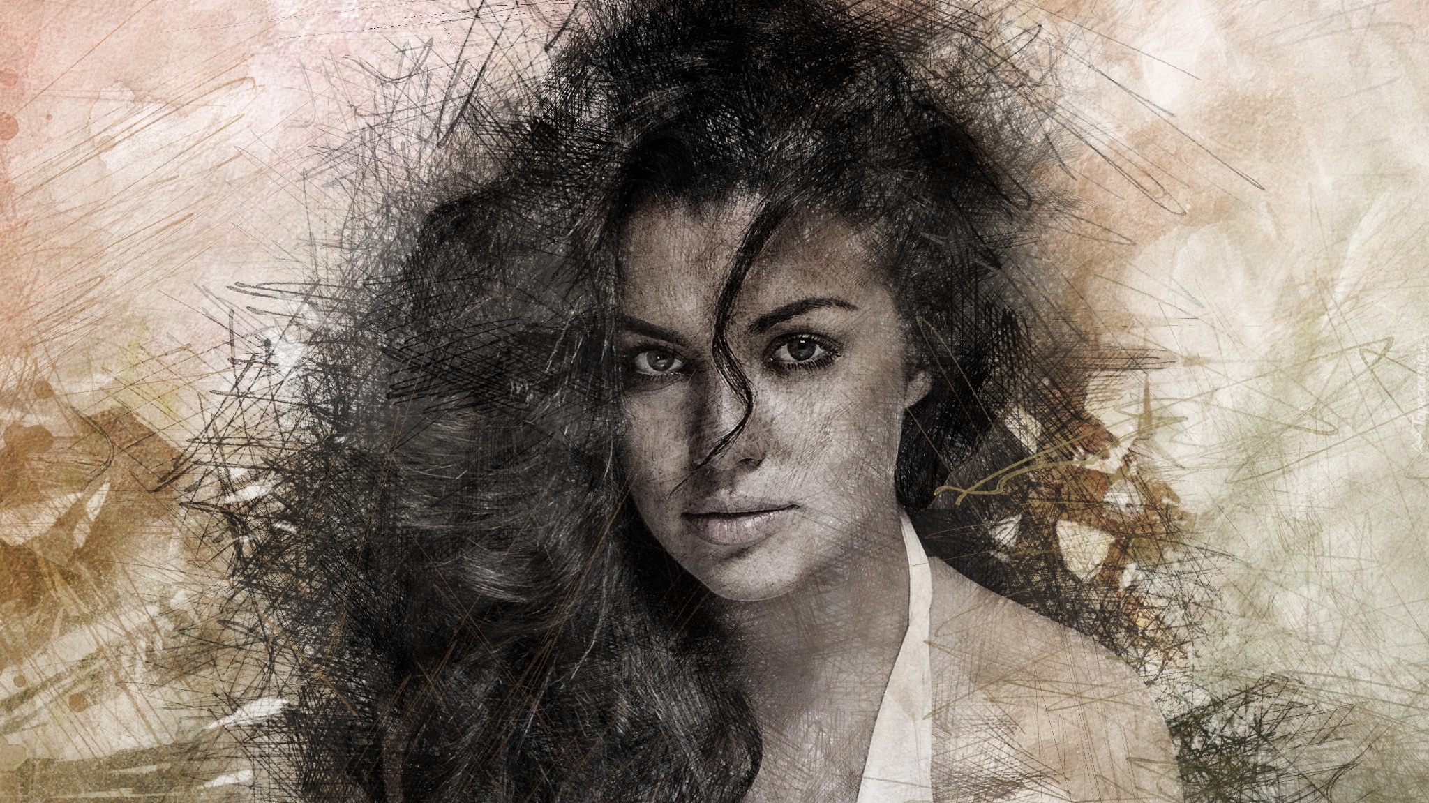 Edytor tapety: Kobieta z kosmykiem włosów na twarzy