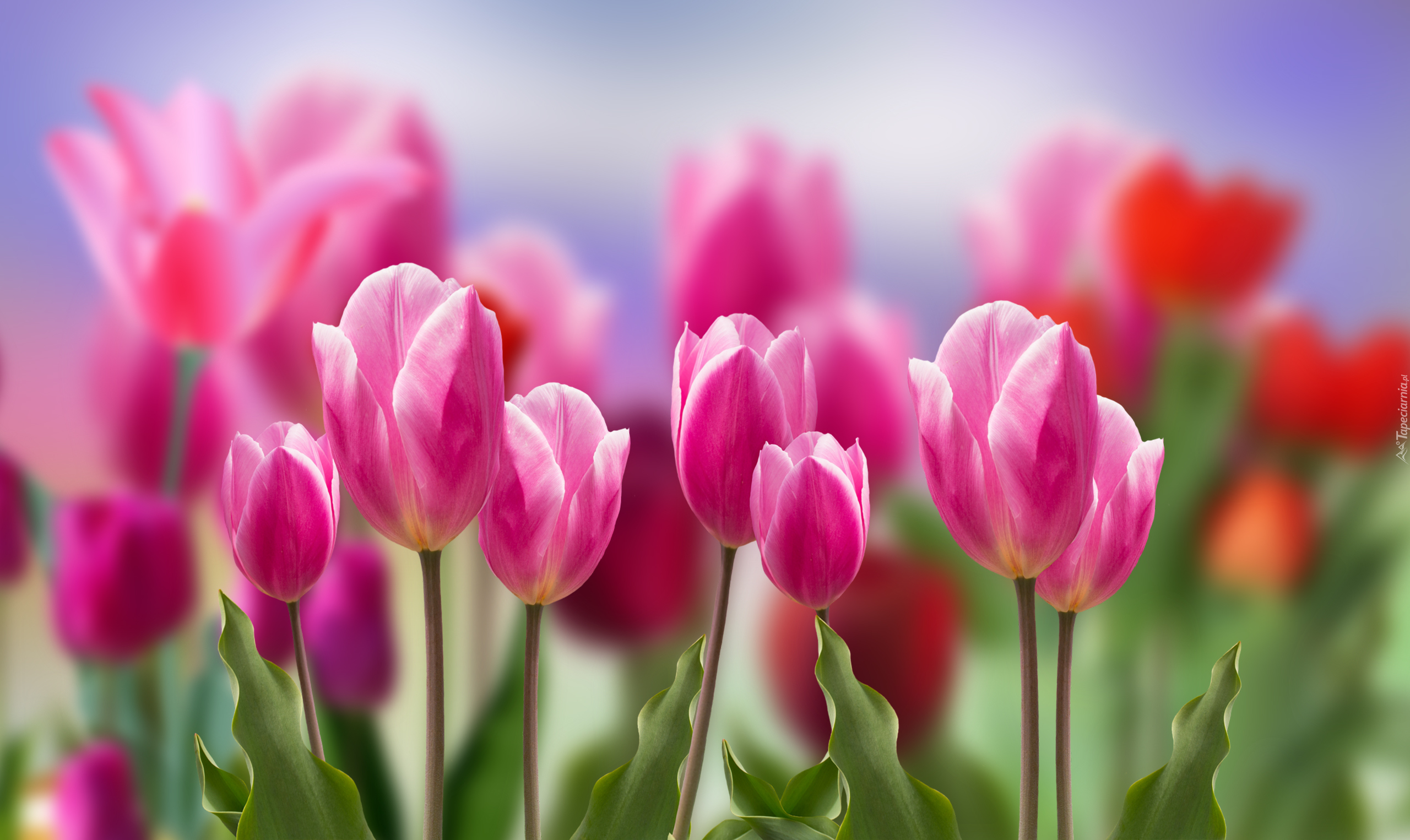 Edytor tapety: Biało-różowe tulipany na rozmytym tle