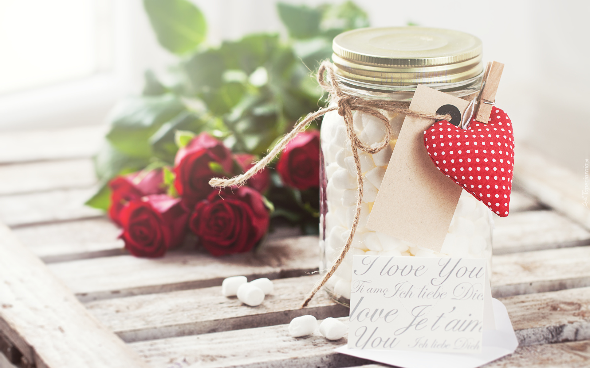 Edytor tapety: Pianki w słoiku z sercem na klamerce